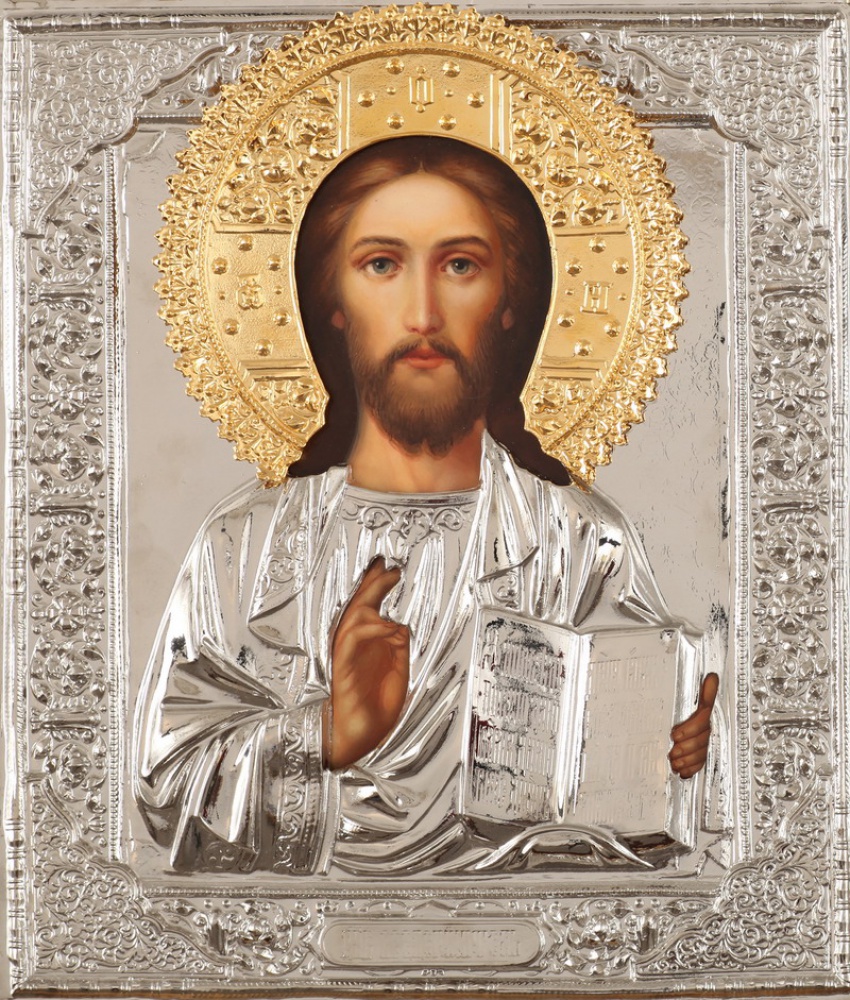 Риза изготавливается методом гальванопластики, из-за определенного техпроцесса все габариты и вес изделия могут отличаться. Икона написана на МДФ, которая покрыта левкасом. Риза изготовлена из меди, покрыта никелем и гальваническим золотом. Тыльная сторона ризы обтянута бархатом. По желанию заказчика ризу можно сделать полностью золоченой или полностью покрытой никелем.