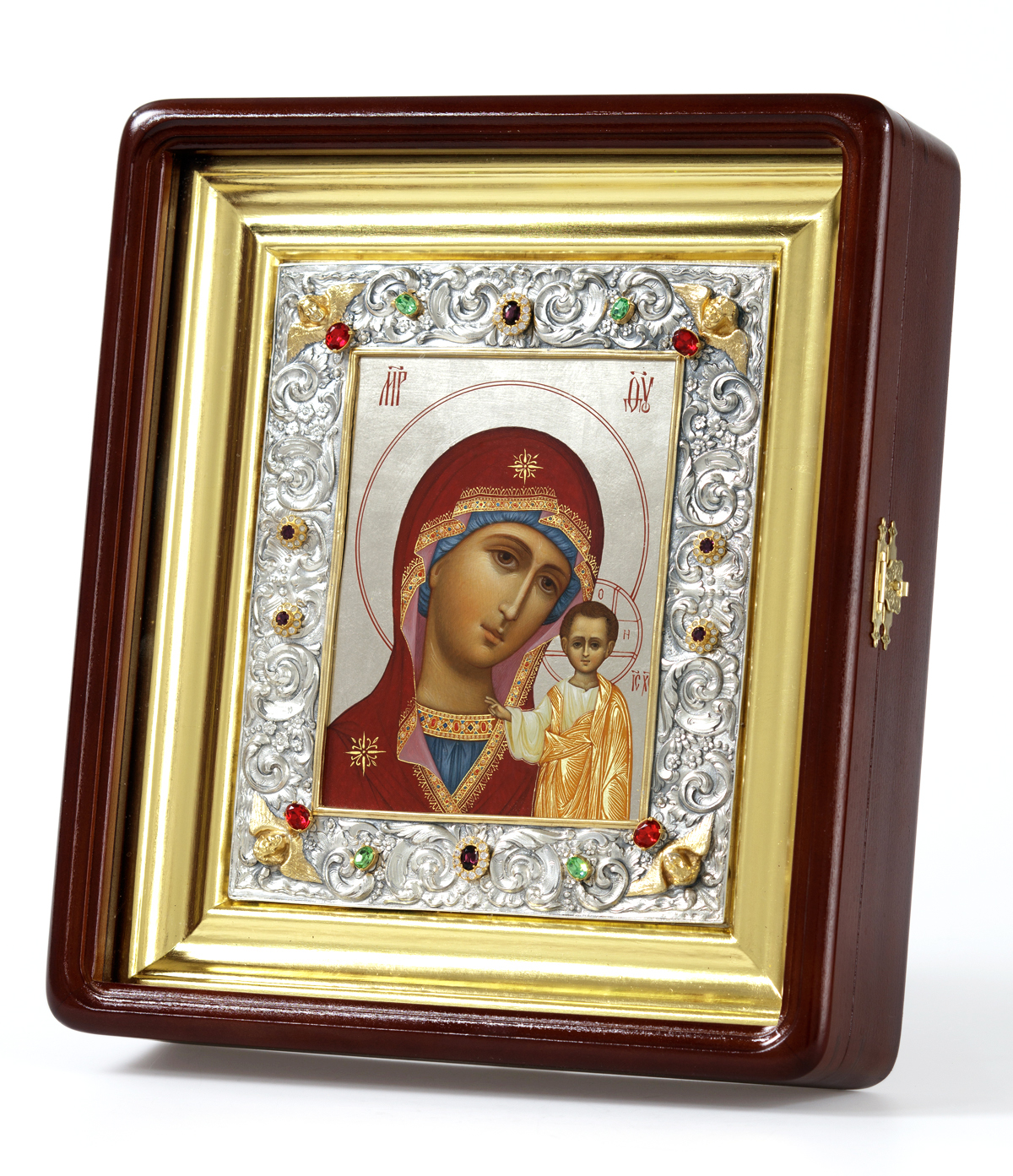 Икона живописная в гальванопластической ризе 18*24 серебро / киот / Казанская БМ (УИН)