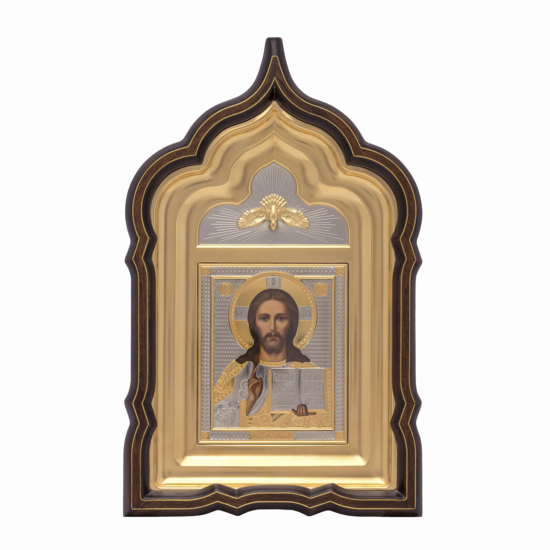 Икона живописная в киоте 11х13 масло, риза, киот №24 Спаситель,