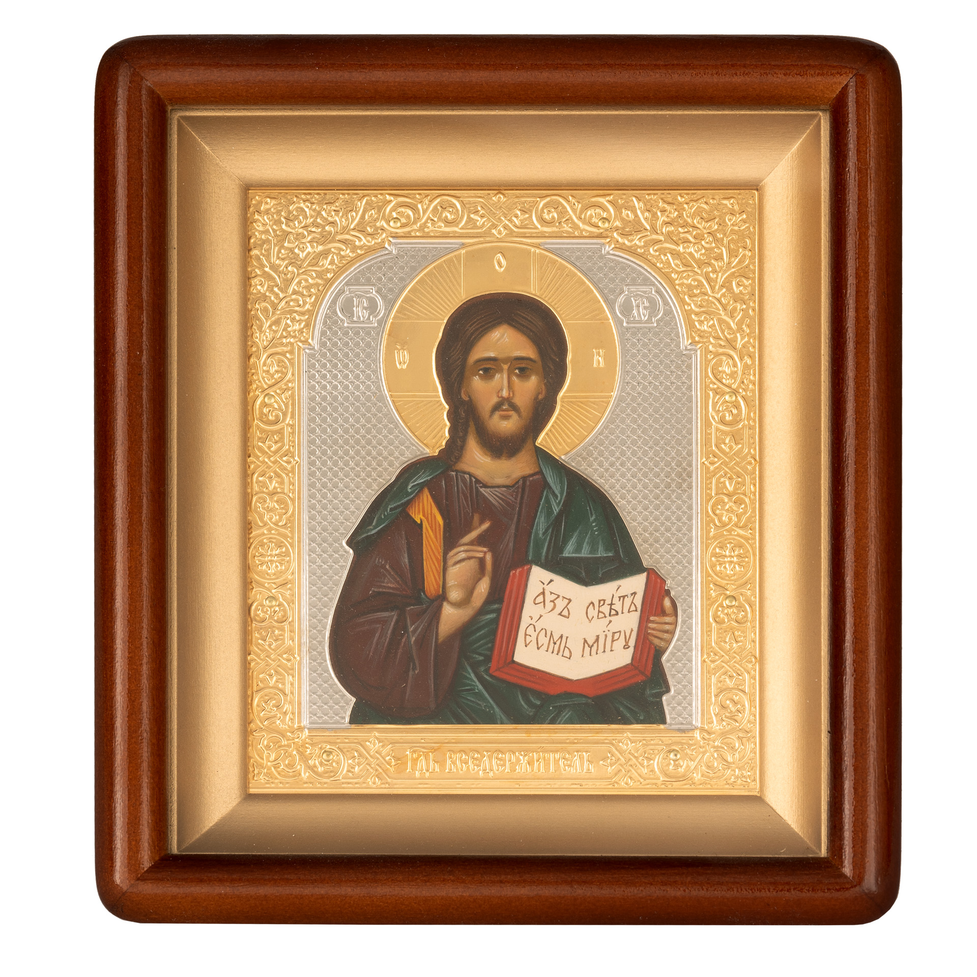 Икона живописная в киоте 11х13 масло, риза открытая, латунь, золочение, киот №2 Спаситель, 03909