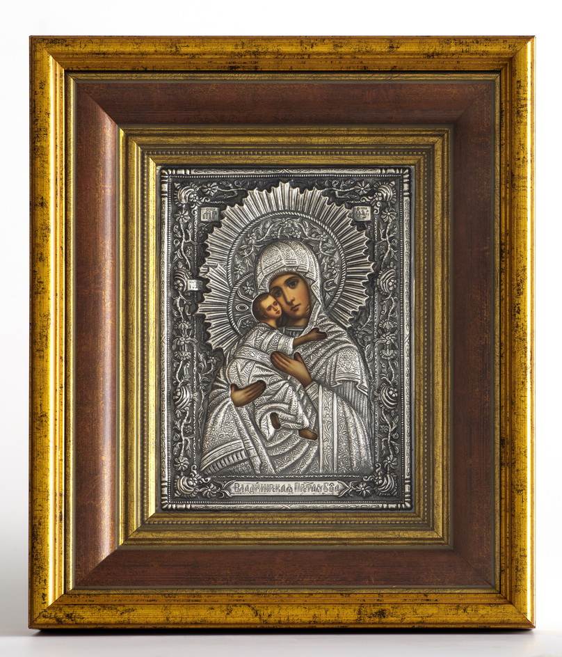 Икона живописная в киоте 18х24 масло, риза №234, черненое серебрение, киот №22 Владимирская БМ