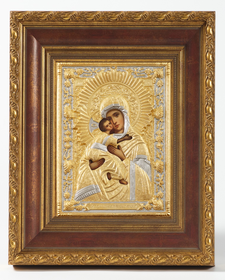 Икона живописная в киоте 18х24 масло, риза №234, матовое золочение, киот №22 Владимирская БМ