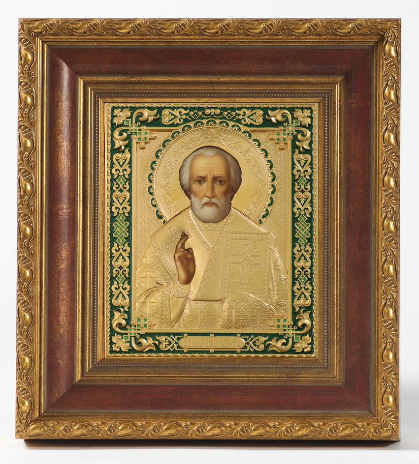 Икона живописная в киоте 18х24 масло, риза №243, матовое глянцевое золочение, эмаль, киот №22 Николай Чудотворец