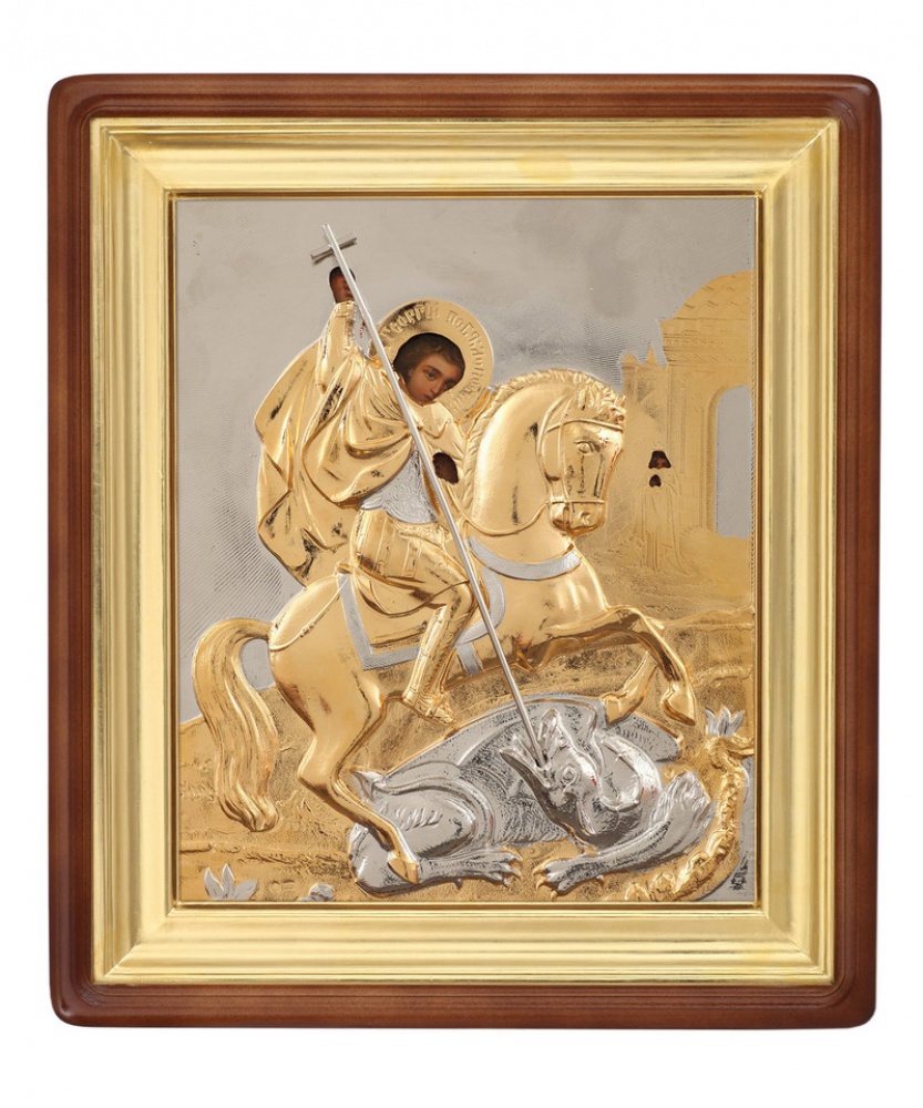 Риза изготавливается методом гальванопластики. В связи с техпроцессом габариты и вес изделия могут отличаться. Икона написана на МДФ покрытой левкасом. Риза изготовлена из меди, покрыта никелем и гальваническим золотом (комбинированное золочение).