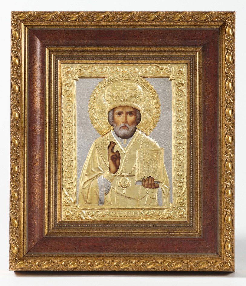Икона живописная в киоте 18х24 масло, риза №51, матовое золочение, киот №22 Николай Чудотворец