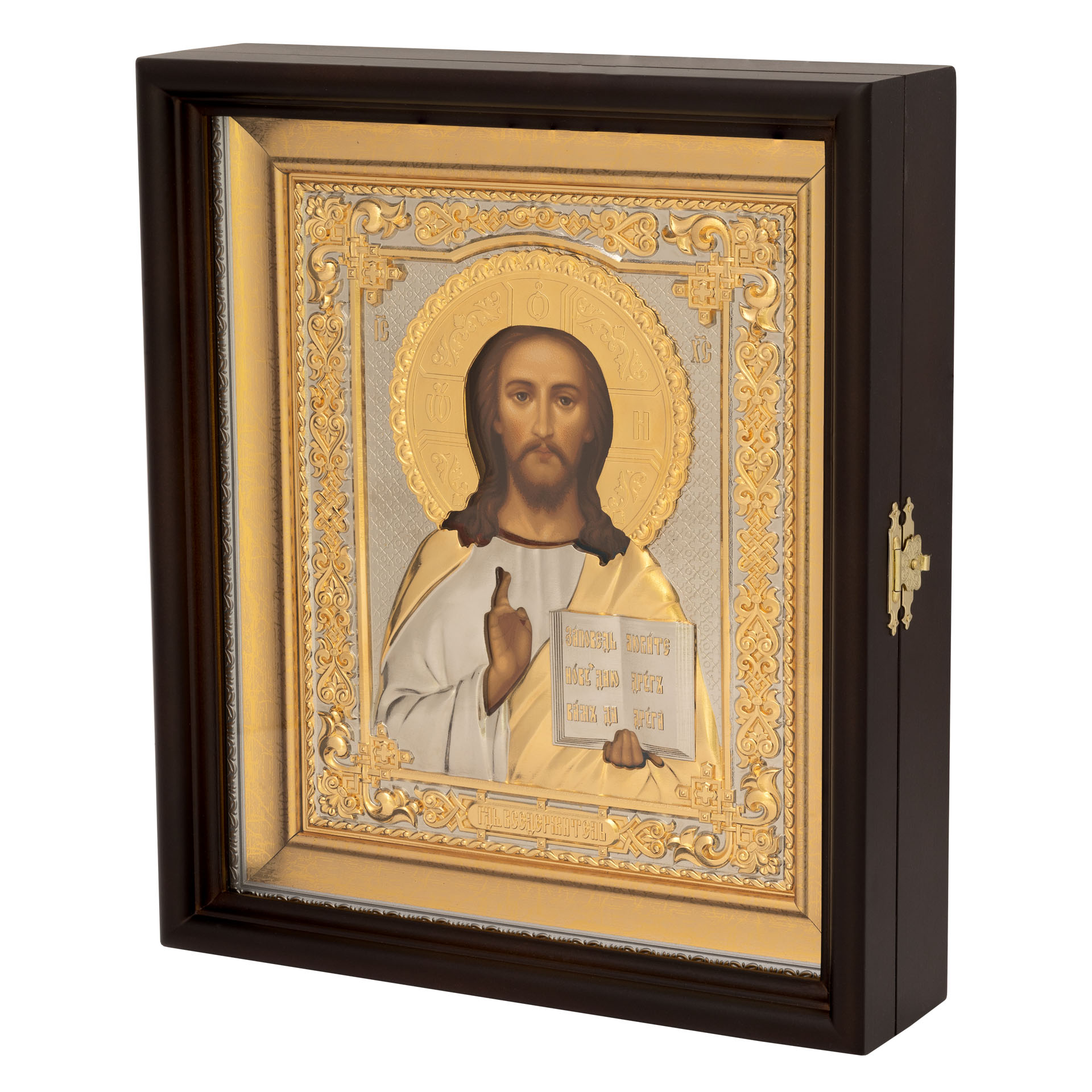 Икона живописная в киоте 18х24 темпера, риза №242 част / золочёная, багетный подрамник Вседержитель