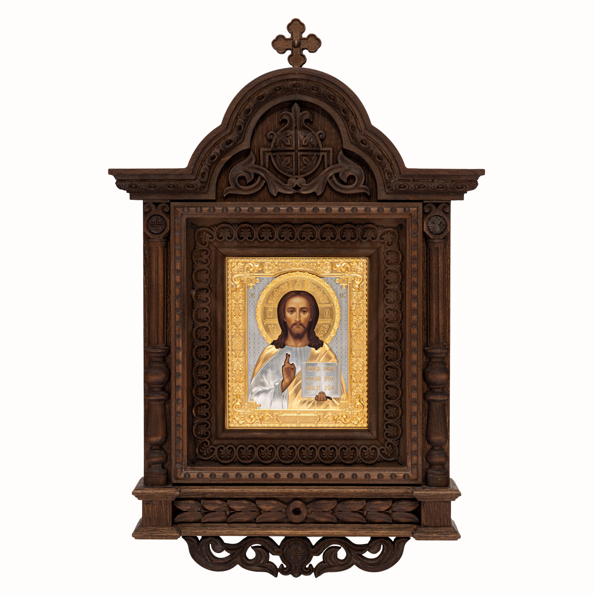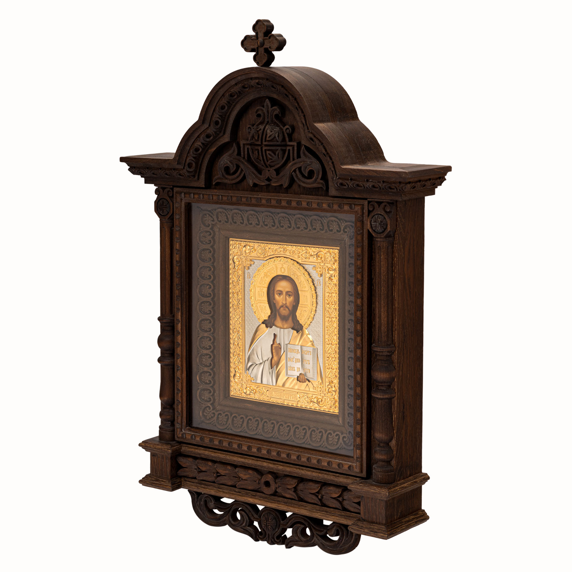 Икона живописная в киоте 18х24 темпера, риза №242, золочение, киот №330 Спаситель