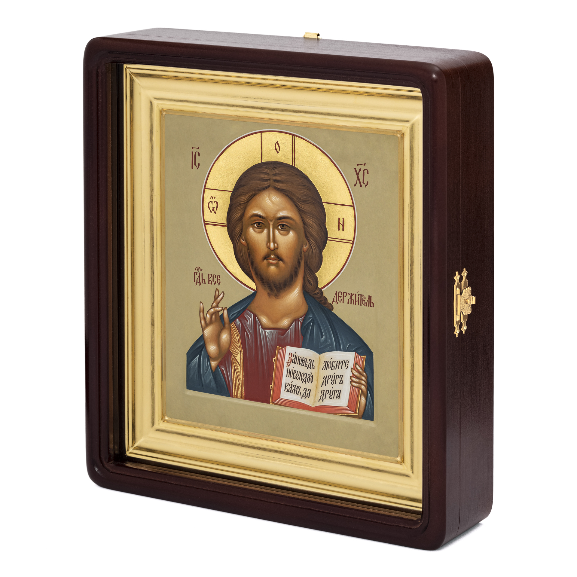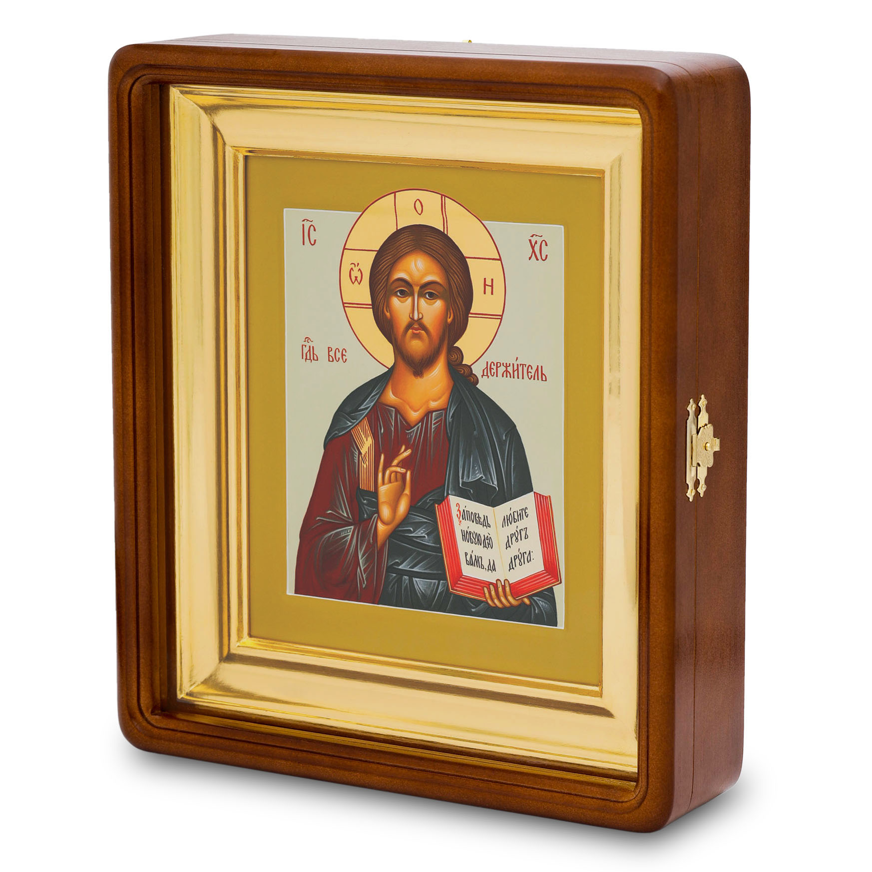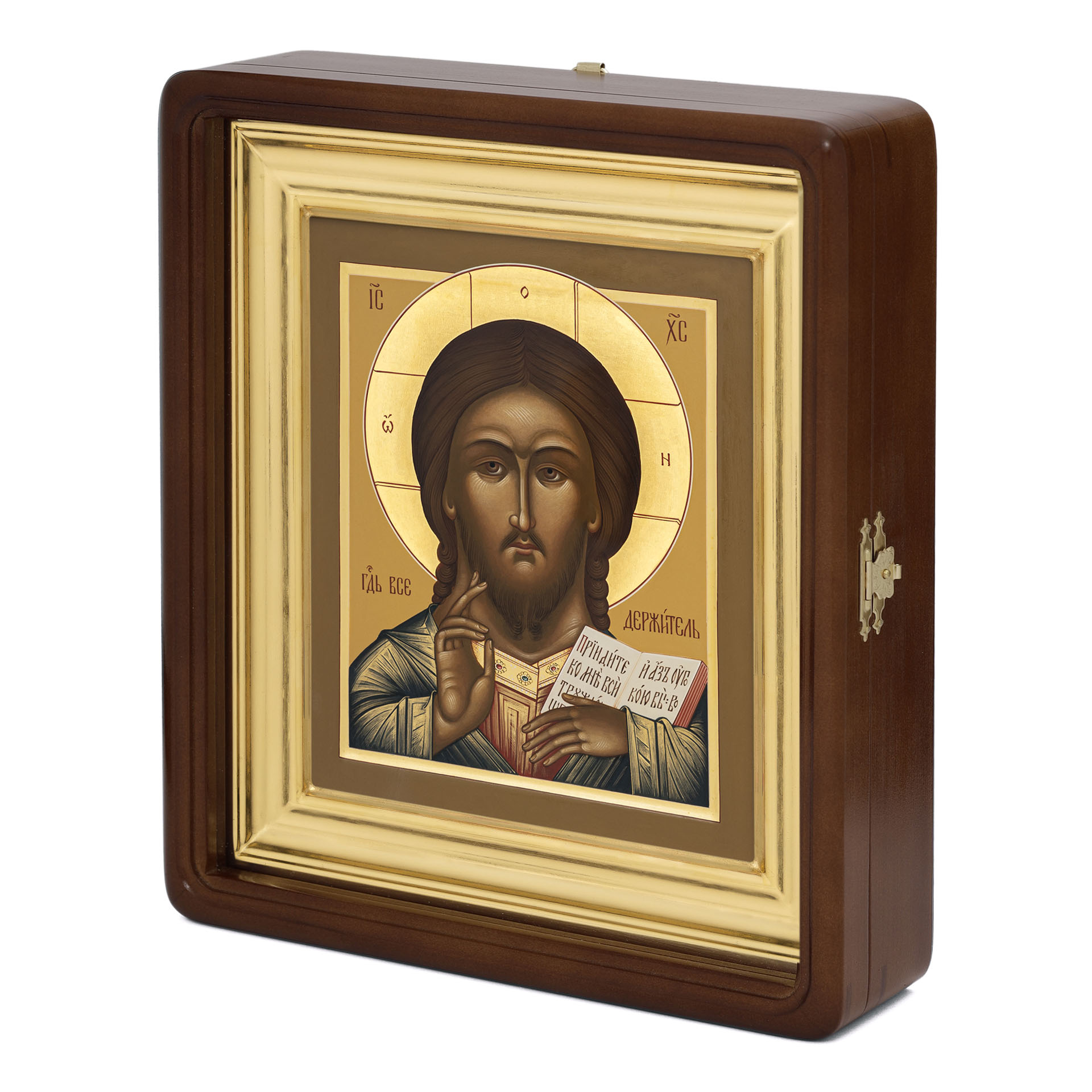 Икона живописная на доске в киоте 18х24 темпера, золоченый нимб, ковчег, киот №1 Спаситель