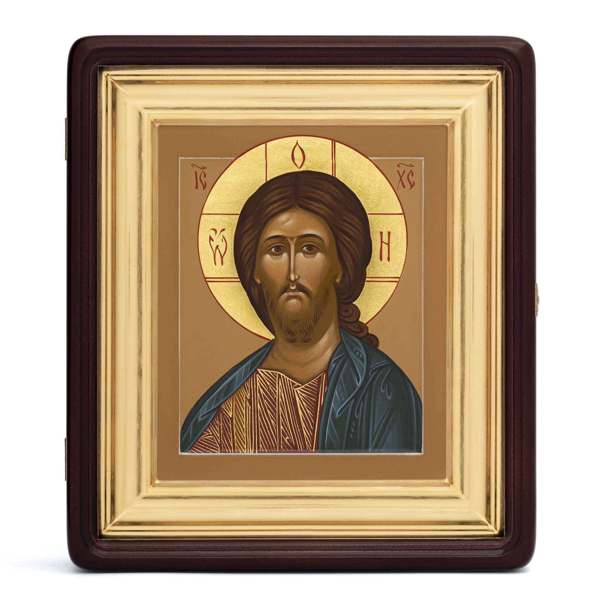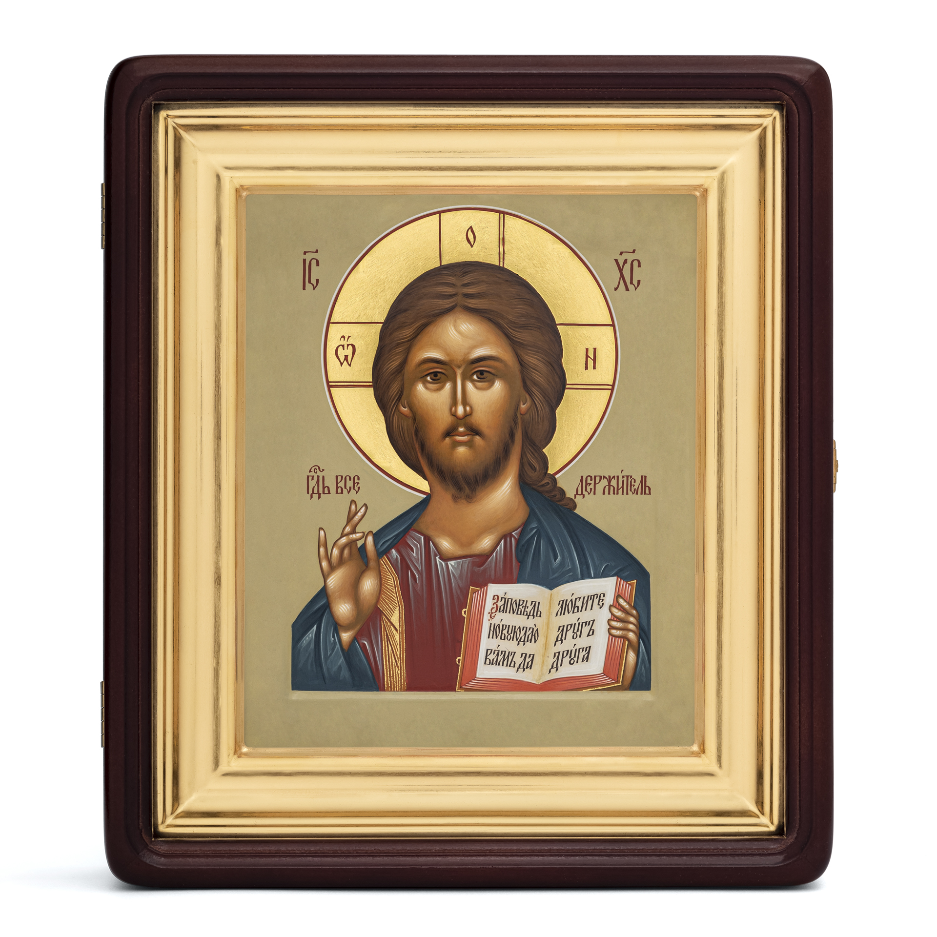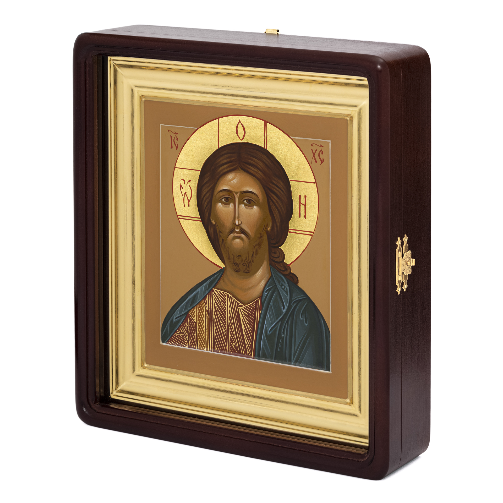 Икона живописная на доске в киоте 18х24 темпера, золоченый нимб, ковчег, киот №1 Спаситель