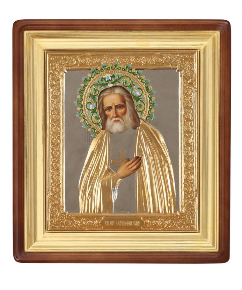Икона живописная в киоте 22х26 масло, риза №55, эмаль, киот №1 Серафим Саровский