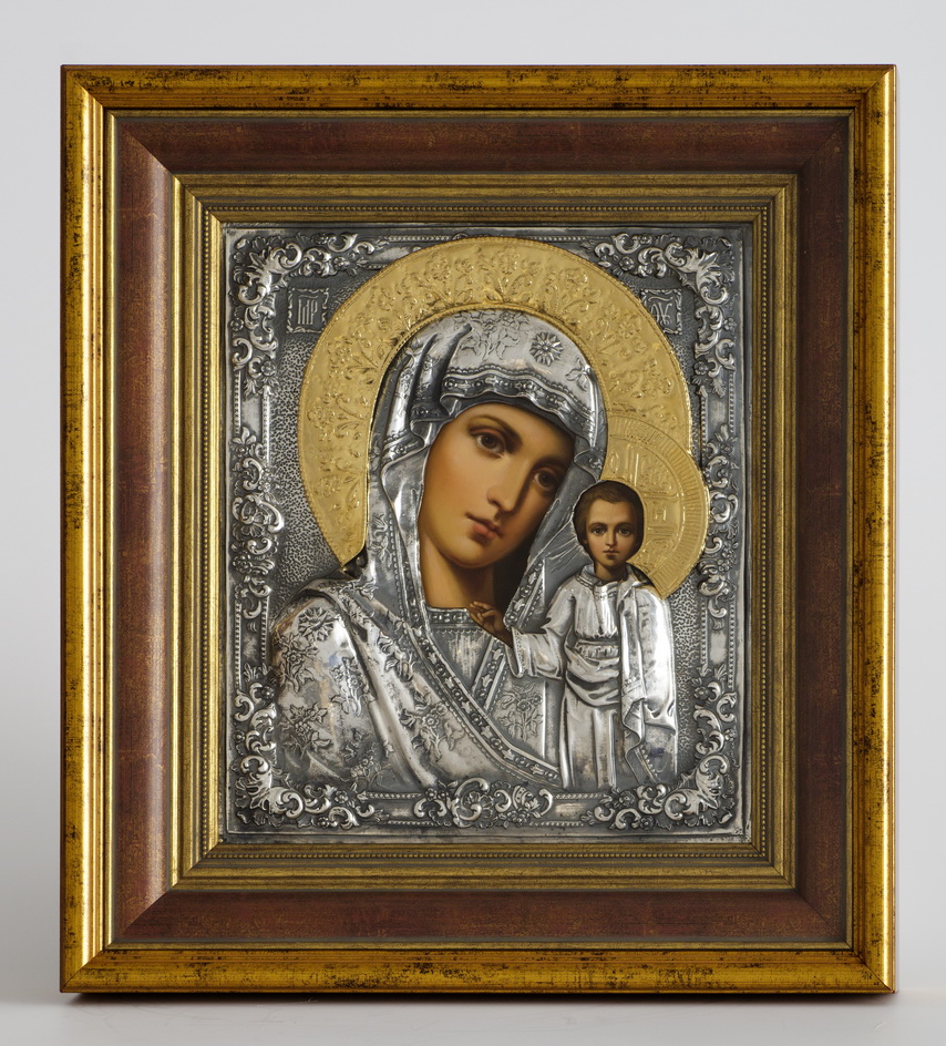 Икона живописная в киоте 24х30 масло, риза №17, черненое серебрение, киот №22 Казанская БМ