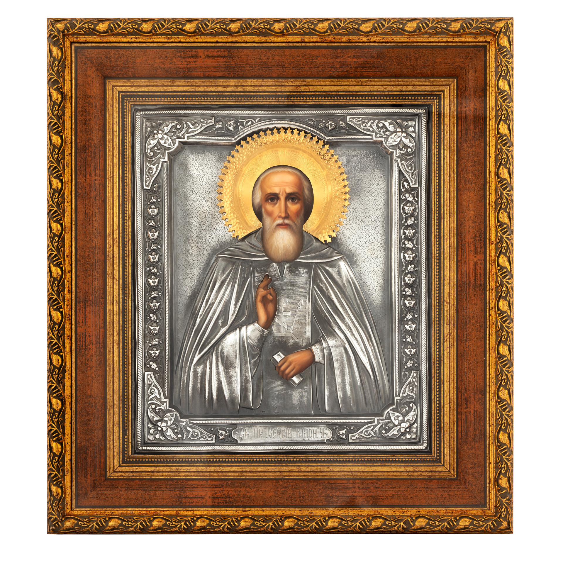 Икона живописная в киоте 24х30 масло, риза №191, черненое серебрение, киот №22 Сергий Радонежский
