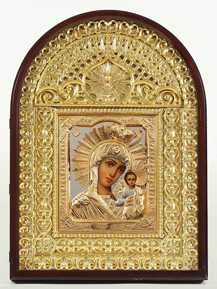 Икона живописная в киоте 24х30 масло, риза №193, арочный киот №14 Казанская БМ