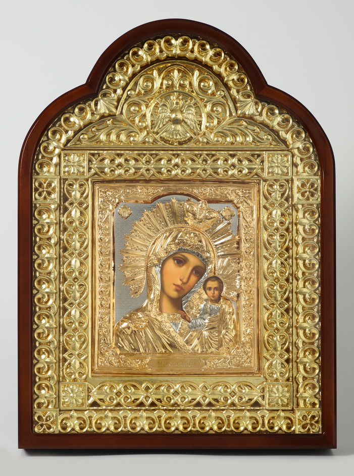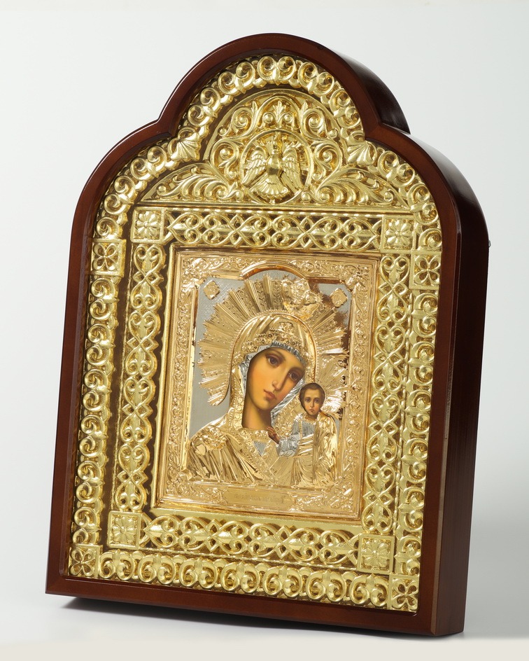 Икона живописная в киоте 24х30 масло, риза №193, арочный киот №15 Казанская БМ