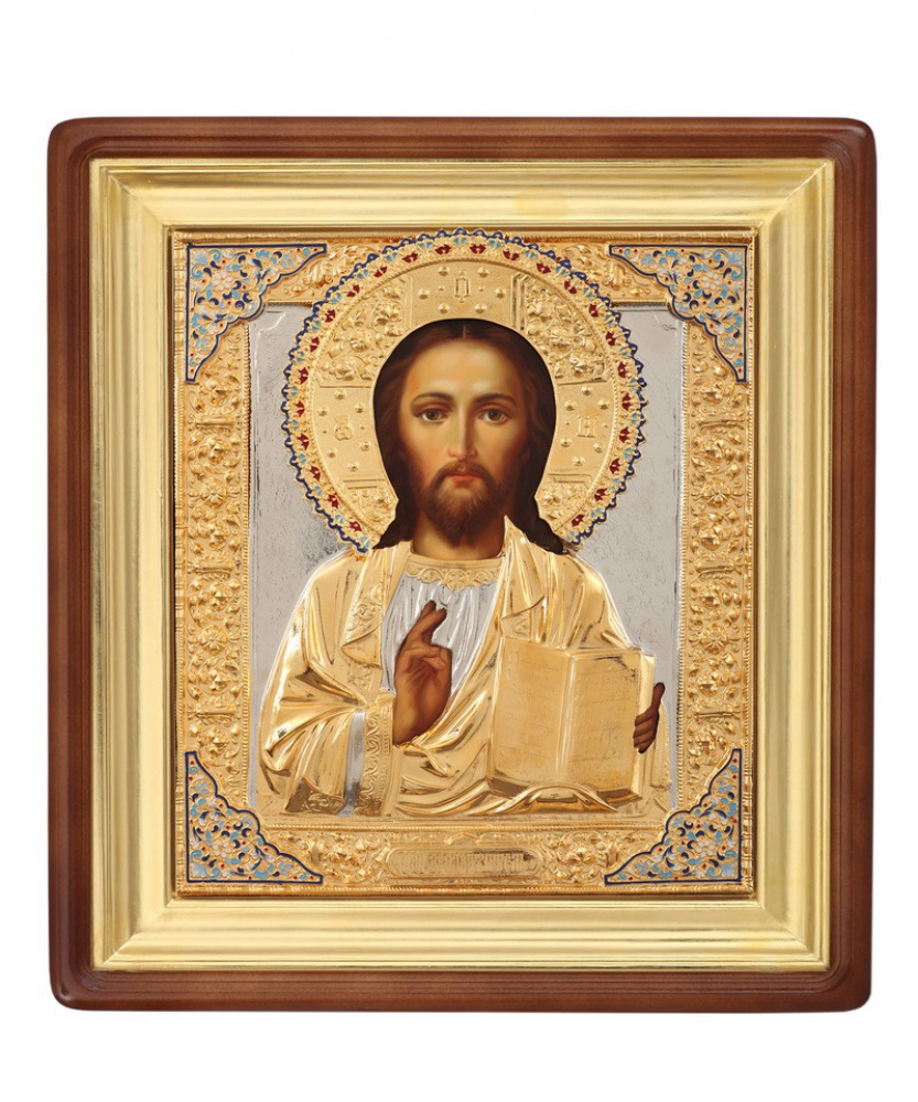 Икона живописная в киоте 24х30 масло, риза №24, эмаль, киот №1 Спаситель