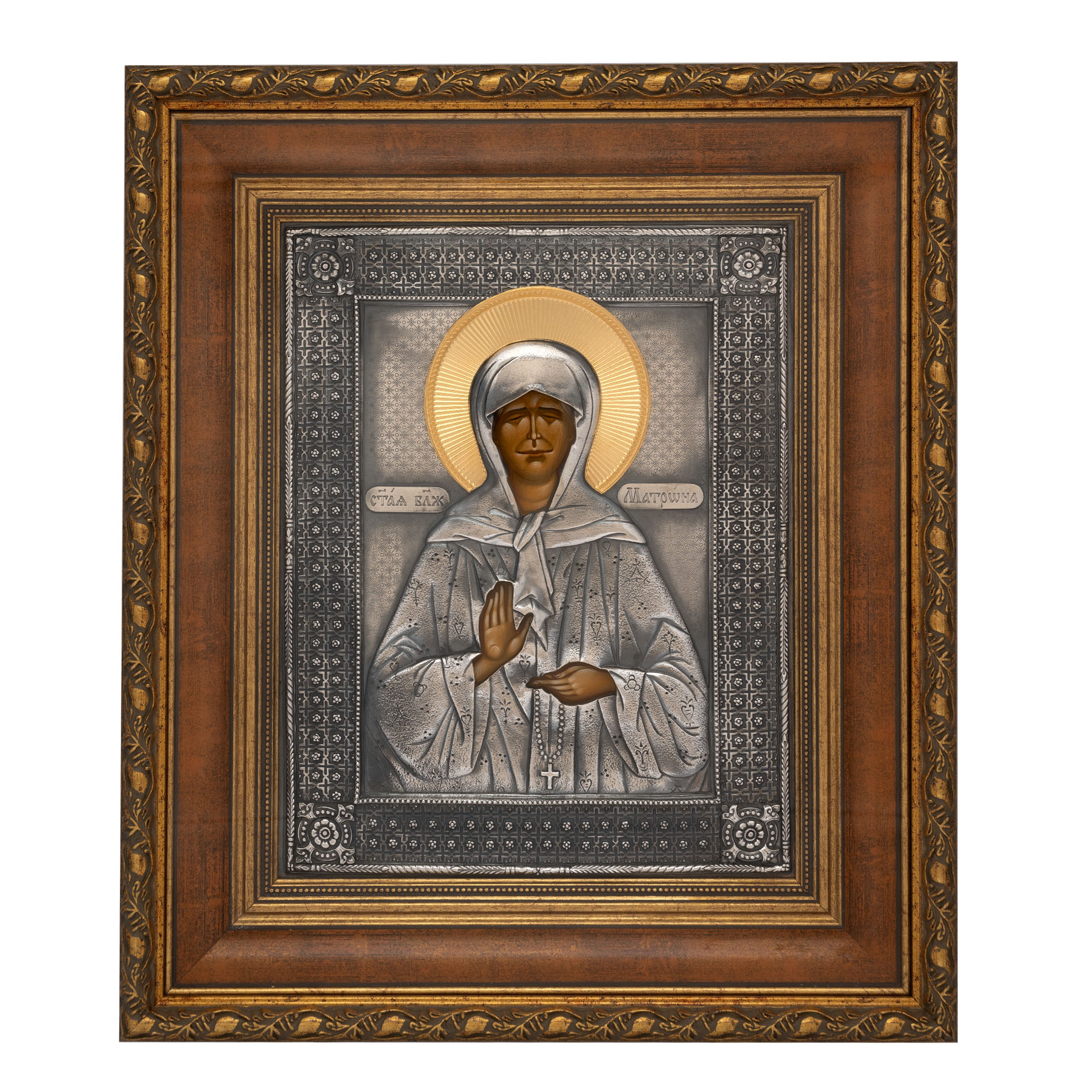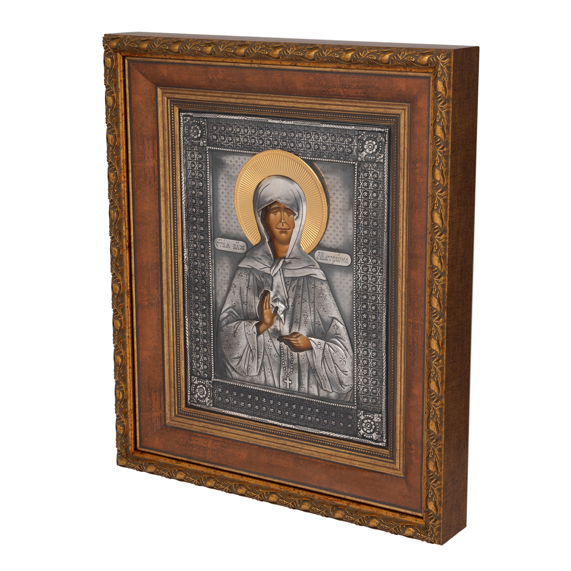 Икона живописная в киоте 24х30 масло, риза №247, черненое серебрение, киот №22 Матрона