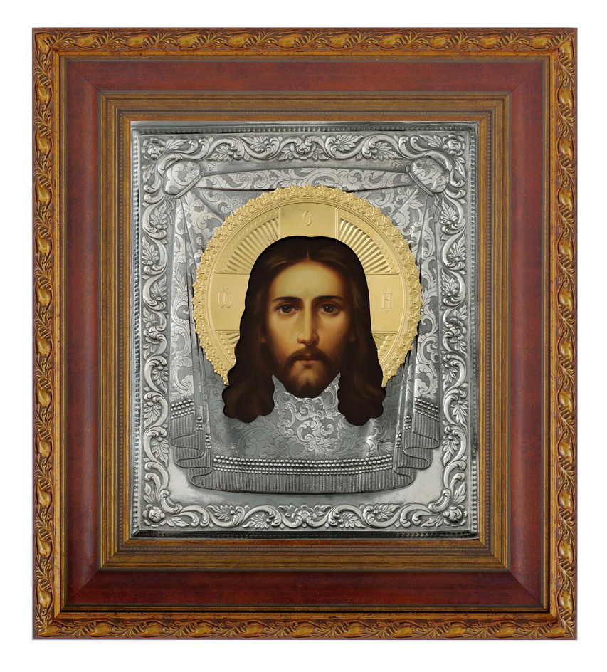 Икона живописная в киоте 24х30 масло, риза №248, черненое серебрение, киот №22 Спас Нерукотворный