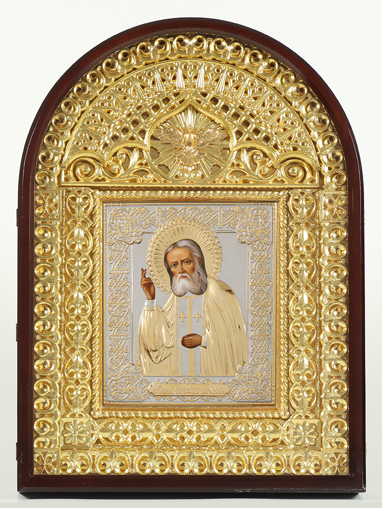 Икона живописная в киоте 24х30 масло, риза №268, арочный киот №14 Серафим Саровский