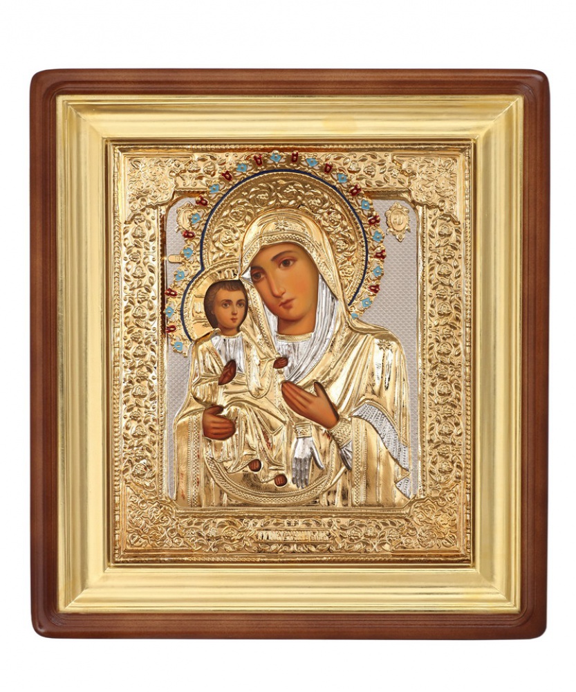 Икона живописная в киоте 24х30 масло, риза №27, эмаль, киот №1 Троеручица