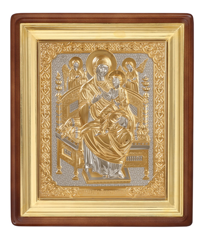 Риза изготавливается методом гальванопластики. В связи с техпроцессом габариты и вес изделия могут отличаться. Риза изготовлена из меди, покрыта никелем и гальваническим золотом (комбинированное золочение).