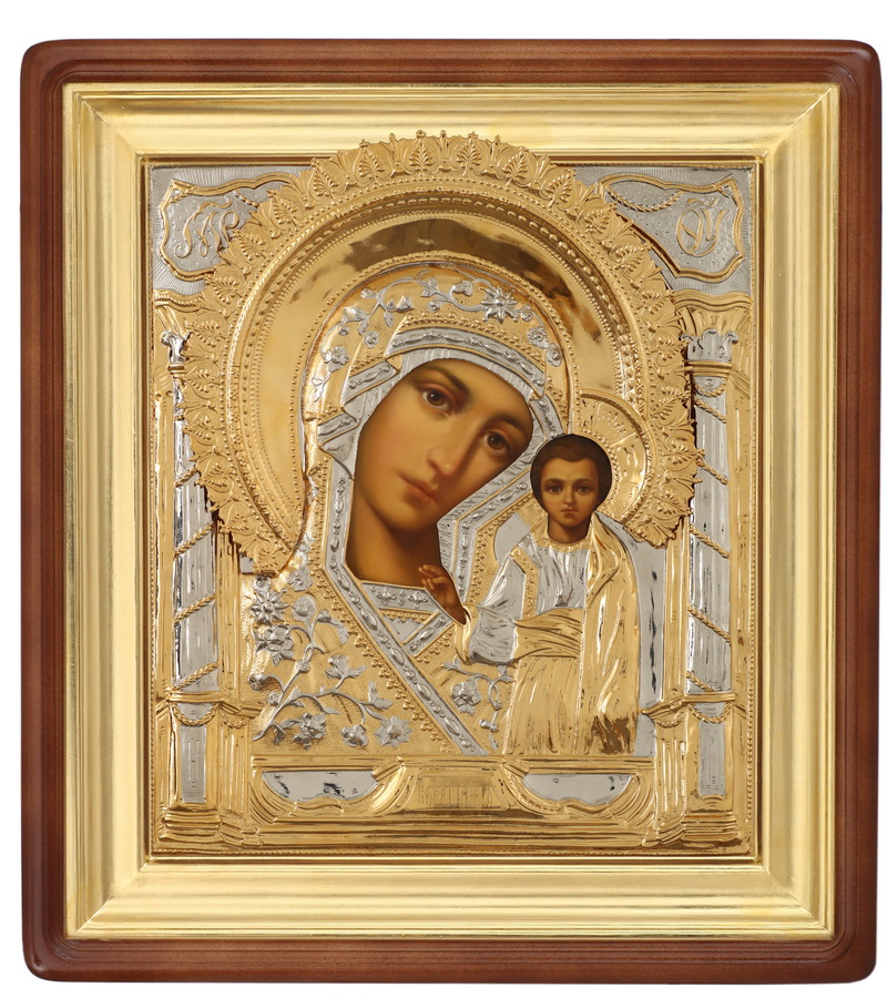 По желанию заказчика киот может быть изготовлен из других пород древесины: дуб, красное дерево и др.. Цвет киота может быть выбран по образцам представленным в отделе сбыта. Подрамник может быть покрашен золотой аэрозольной краской. Ризу можно сделать полностью золоченой или полностью никелированной. В таких случаях цена рассчитывается индивидуально.