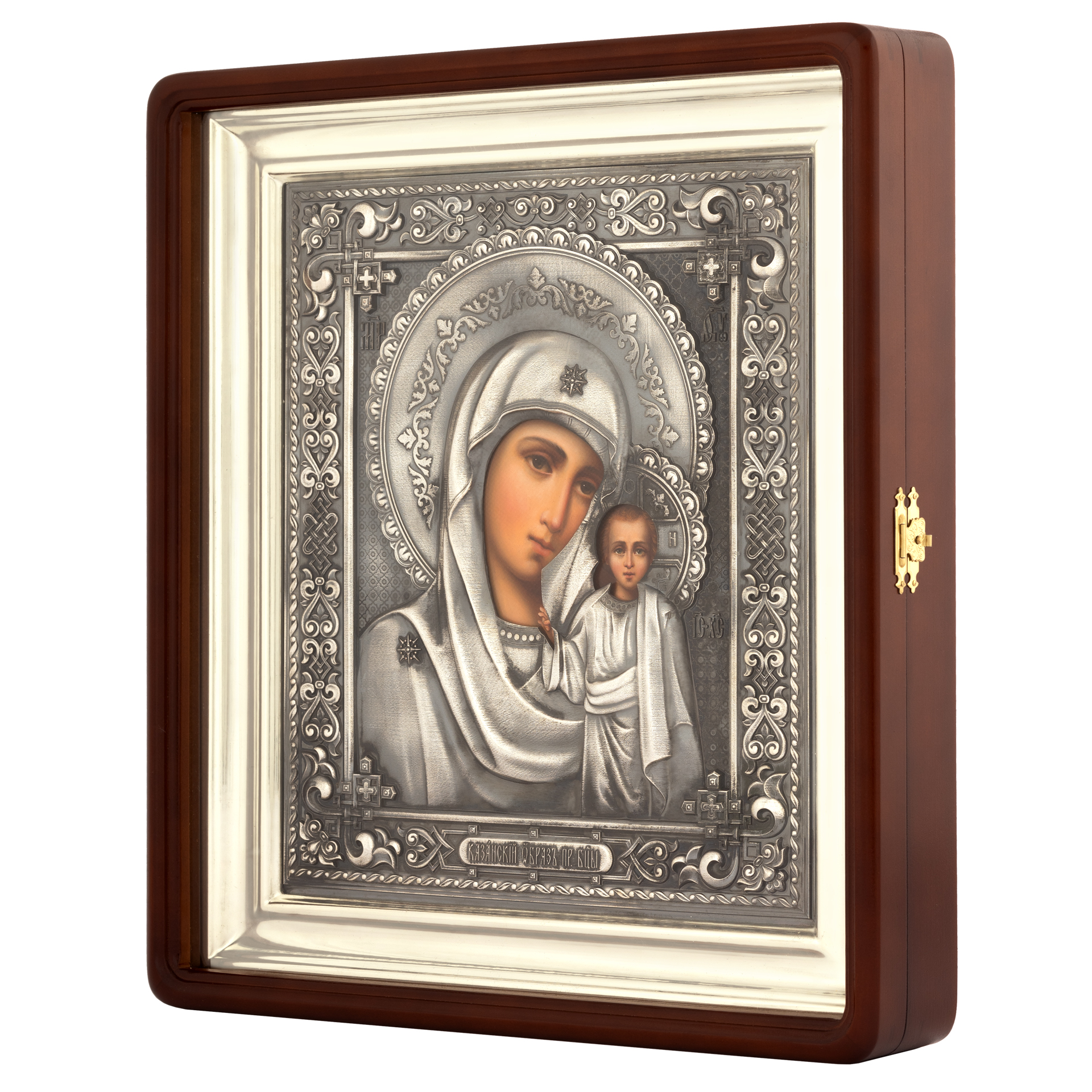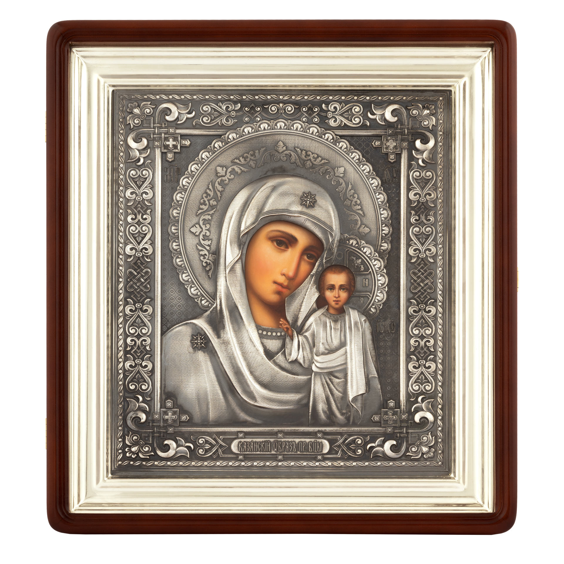 Икона живописная в киоте 24х30 масло, риза №303, черненое серебрение, киот №1 Казанская БМ