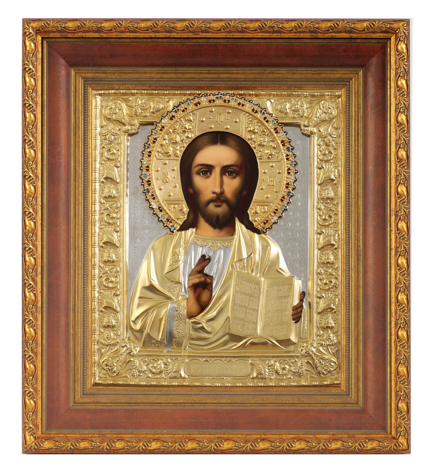 Икона живописная в киоте 24х30 масло, риза №31, матовое золочение, эмаль, киот №22 Спаситель