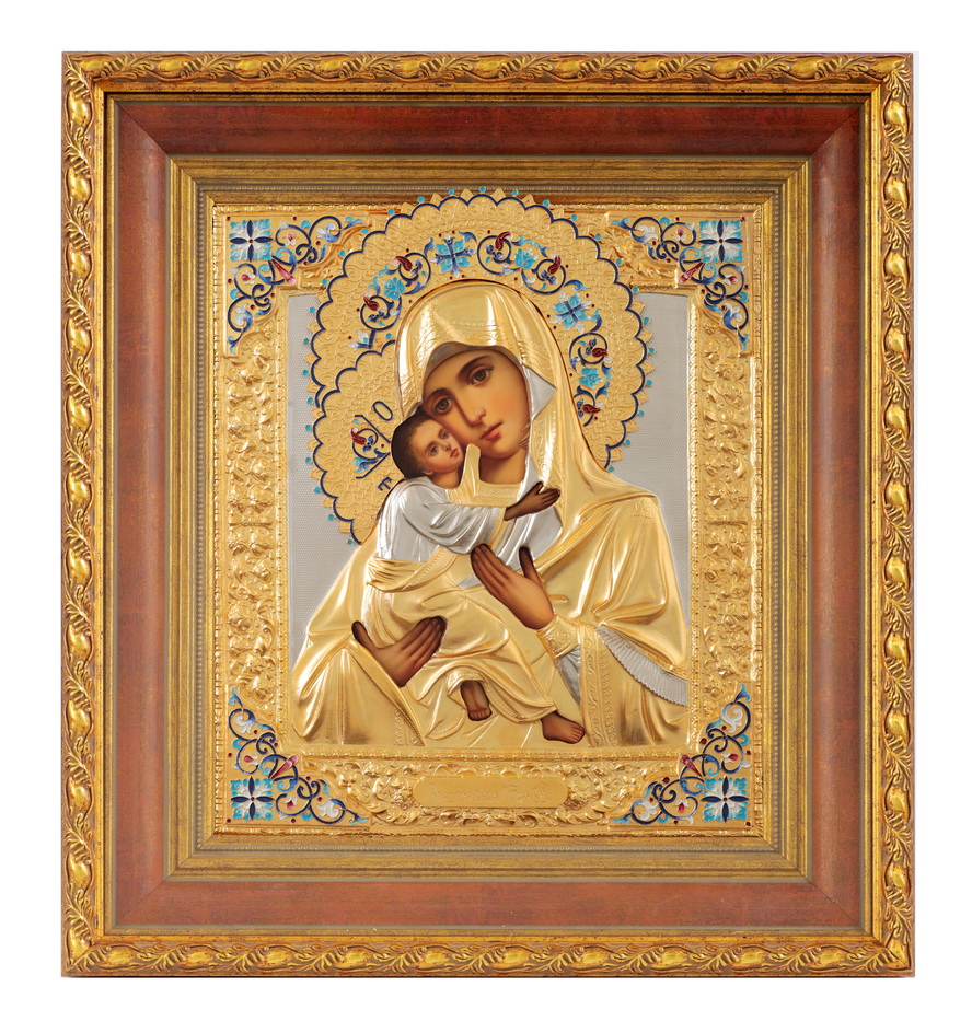 Риза частичное матовое золочение, эмаль, киот багет, подрамник багет