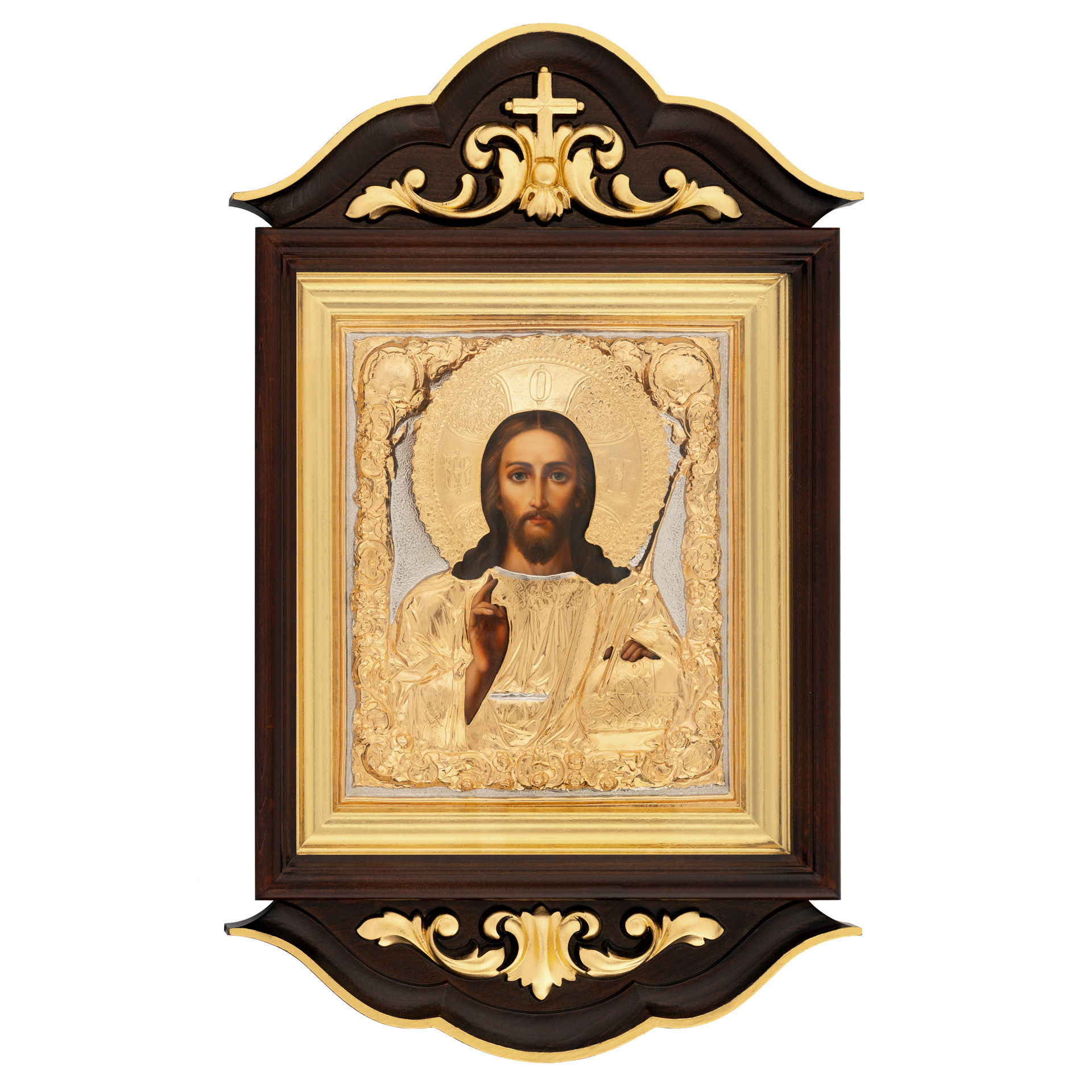 Икона живописная в киоте 24х30 масло, риза №76, киот №3 Спаситель