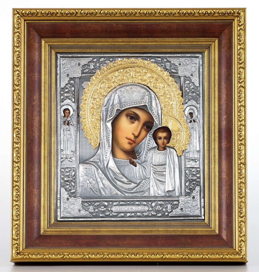 Икона живописная в киоте 24х30 масло, риза №88, черненое серебрение, киот №22 Казанская БМ