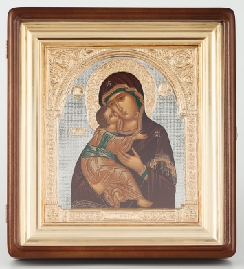 Икона живописная в киоте 24х30 темпера, риза №46, киот №1 Владимирская БМ