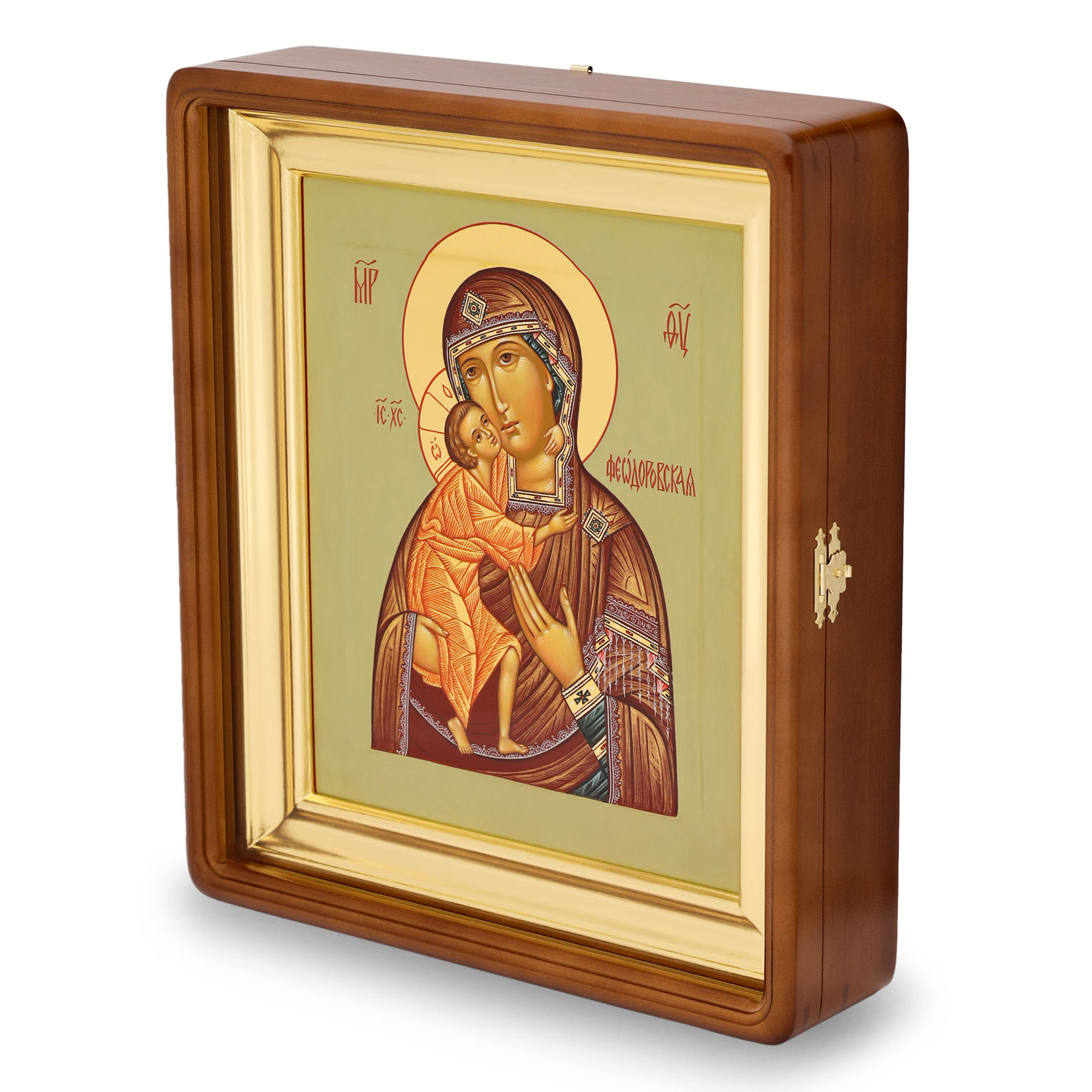 Икона живописная на доске в киоте 24х30 темпера, золоченый нимб, ковчег, киот №1 Феодоровская БМ