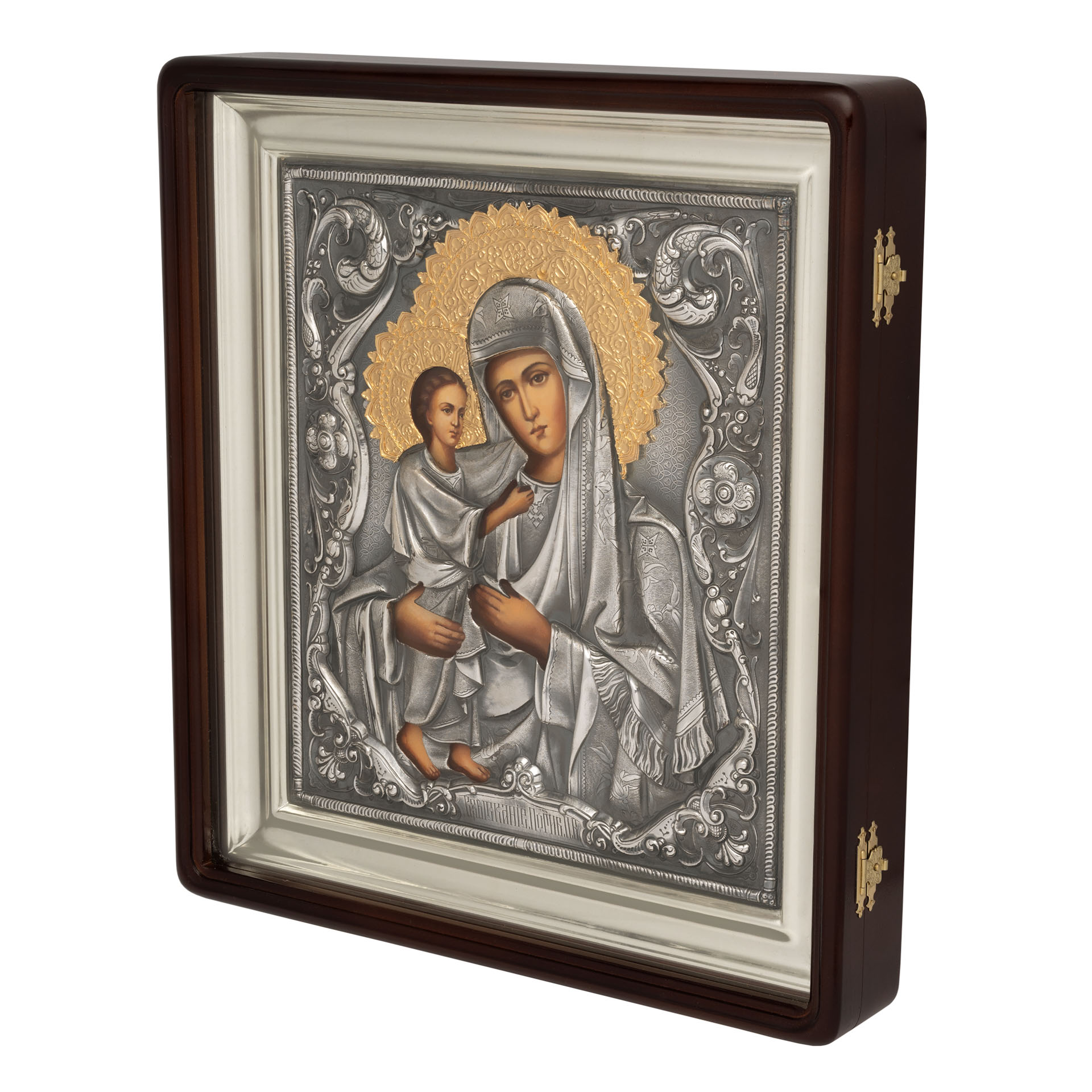 Риза черненое серебрение, частичное золочение, киот липа