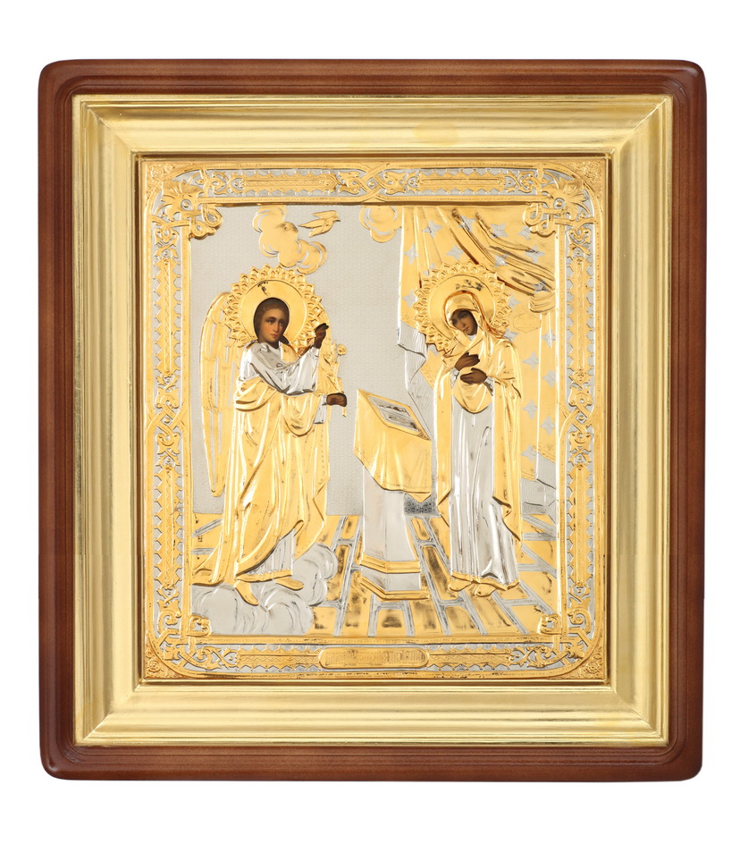 Риза изготавливается методом гальванопластики. В связи с техпроцессом габариты изделия могут отличаться. Икона написана на МДФ покрытой левкасом. Риза изготовлена из меди, покрыта никелем и гальваническим золотом (комбинированное золочение).