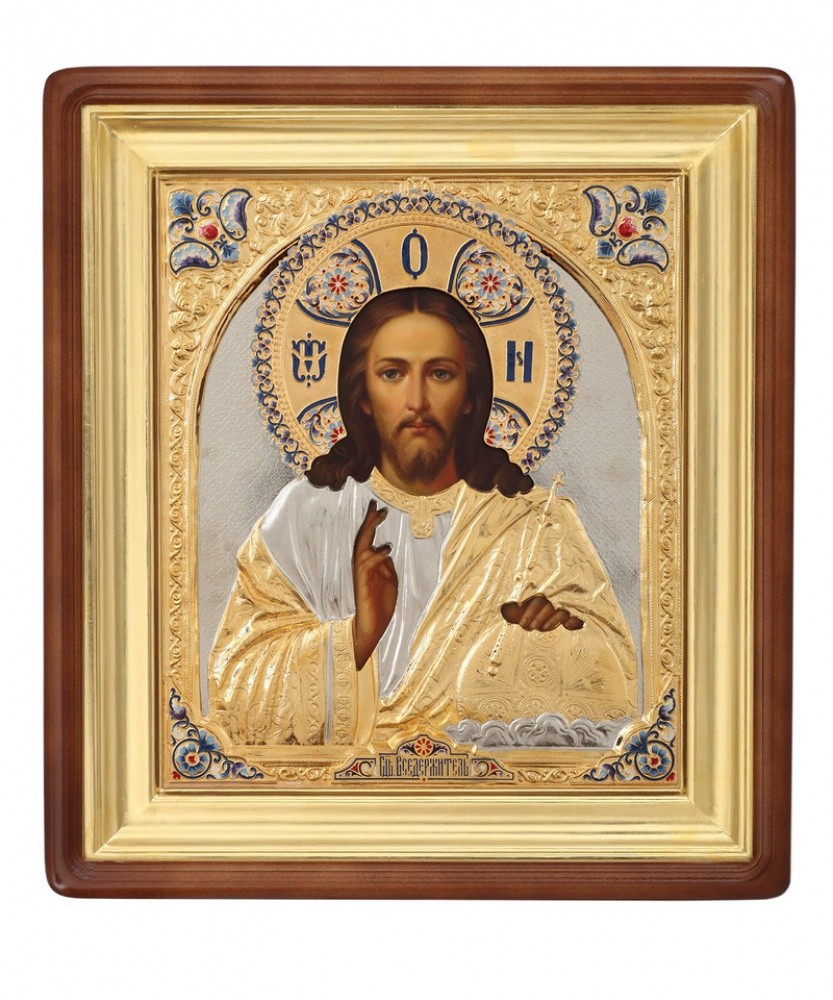Икона живописная в киоте 30х40 масло, риза №33, эмаль, киот №1 Спаситель