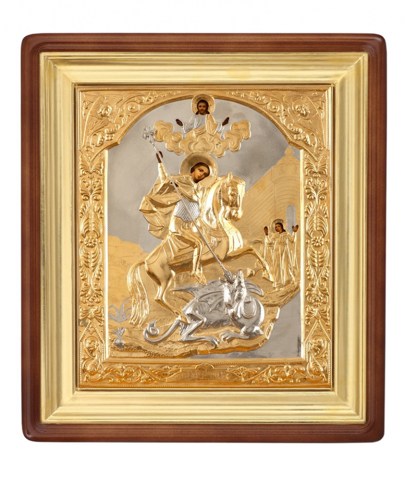 Икона живописная в киоте 30х40 масло, риза №38, киот №1 Георгий Победоносец