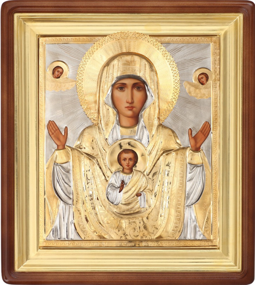 Риза изготавливается методом гальванопластики. В связи с техпроцессом габариты и вес изделия могут отличаться. Икона написана на МДФ покрытой левкасом. Риза изготовлена из меди, покрыта никелем и гальваническим золотом (комбинированное золочение).