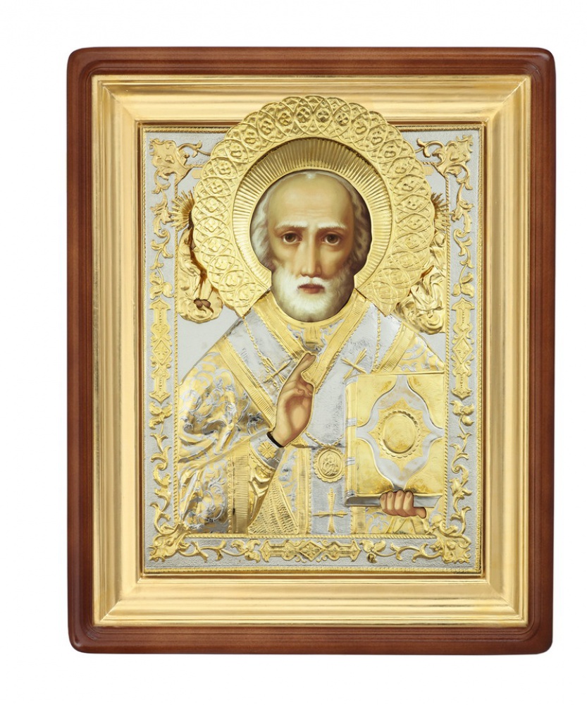 Икона живописная в киоте 50х60 масло, риза №148, киот №1 Николай Чудотворец