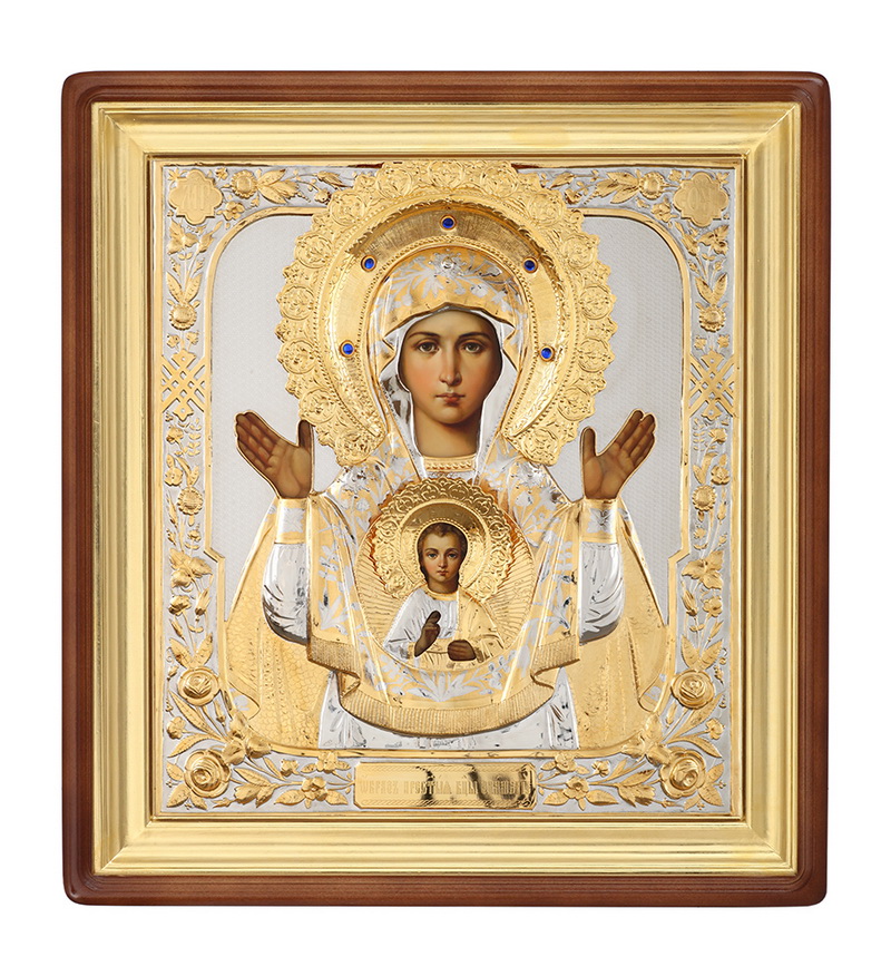 Икона живописная в киоте 50х60 масло, риза №279, камни, киот №1 Знамение