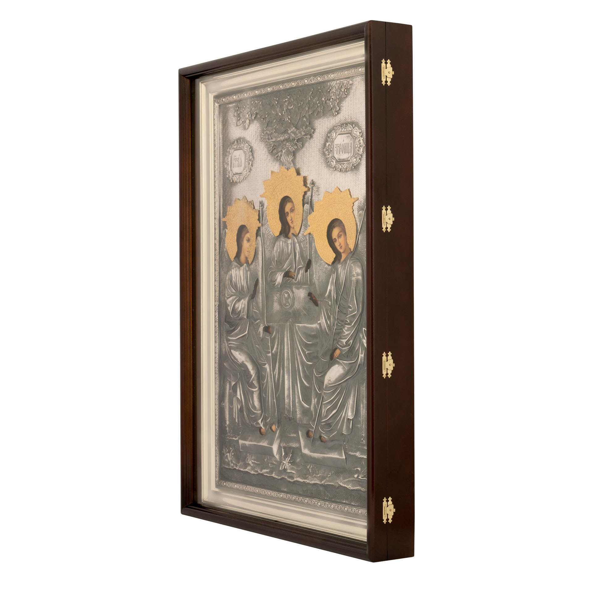 Икона живописная в киоте 50х70 масло, риза №85, черненое серебрение, киот №1 Троица