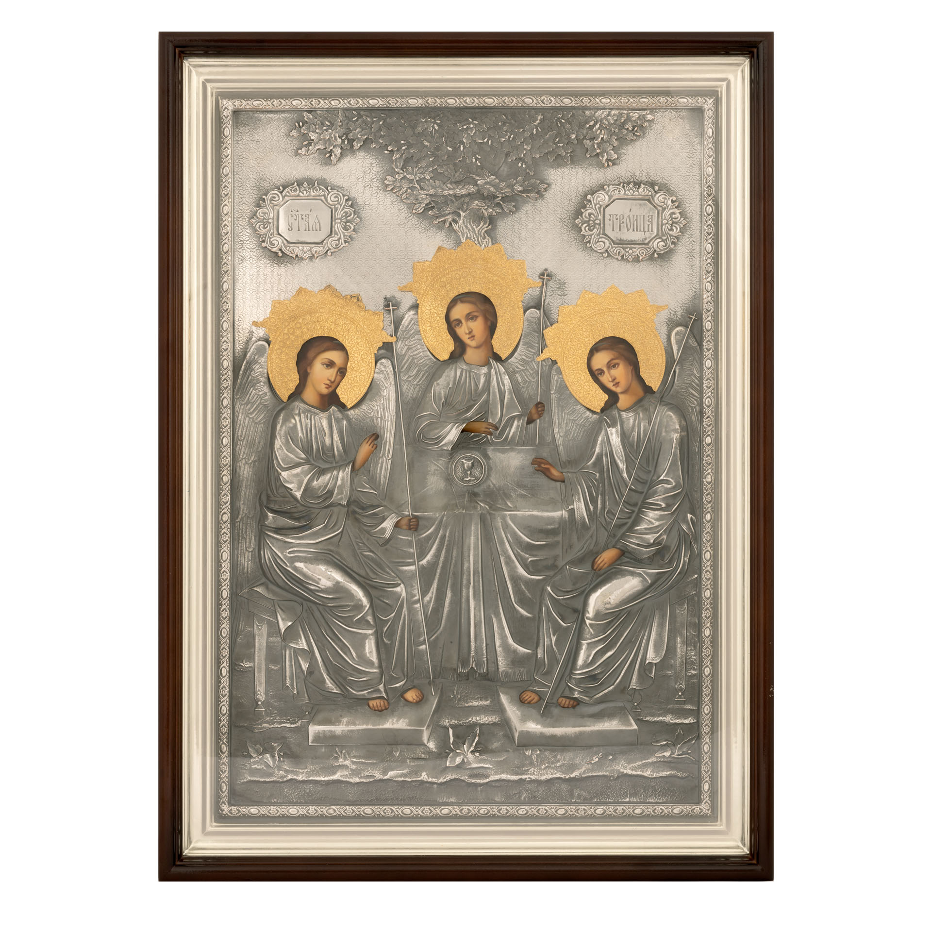 Риза черненое серебрение, частичное золочение, киот липа