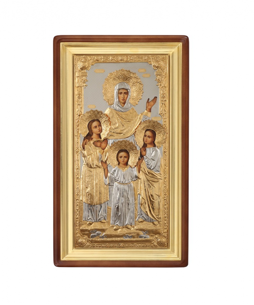 Икона живописная в киоте 55х110 масло, риза №156, киот №1 Вера.Надежда.Любовь и мать их София