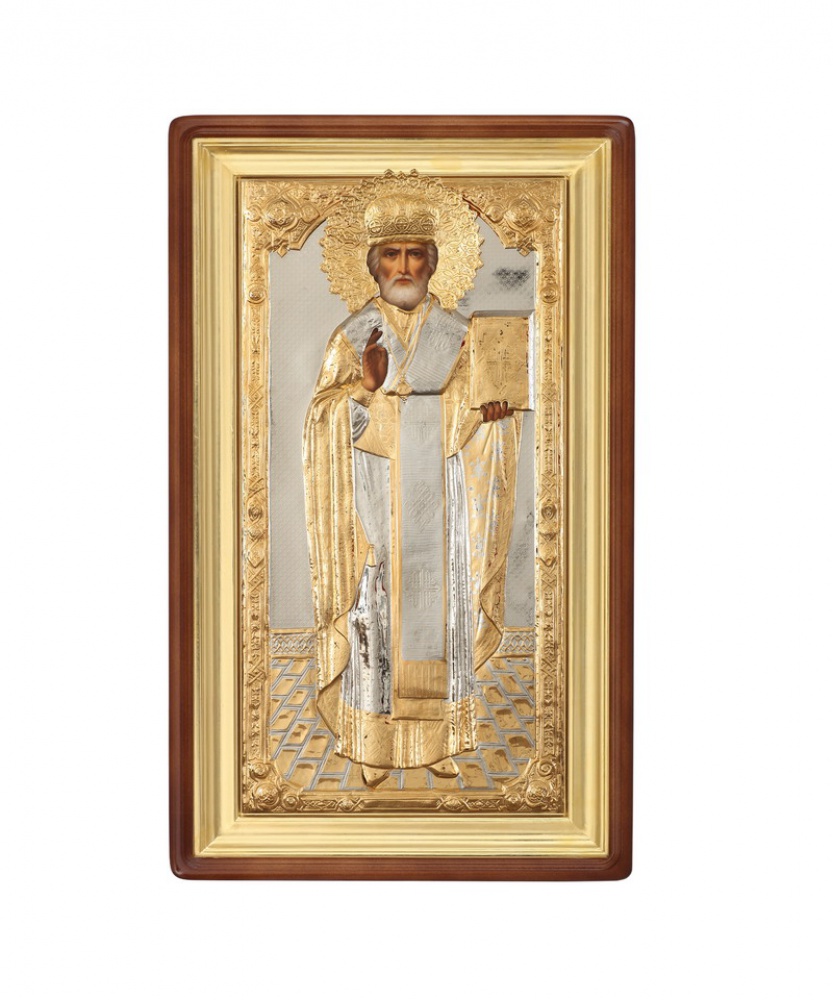 Икона живописная в киоте 60х120 масло, риза №170, киот №1 Николай Чудотворец