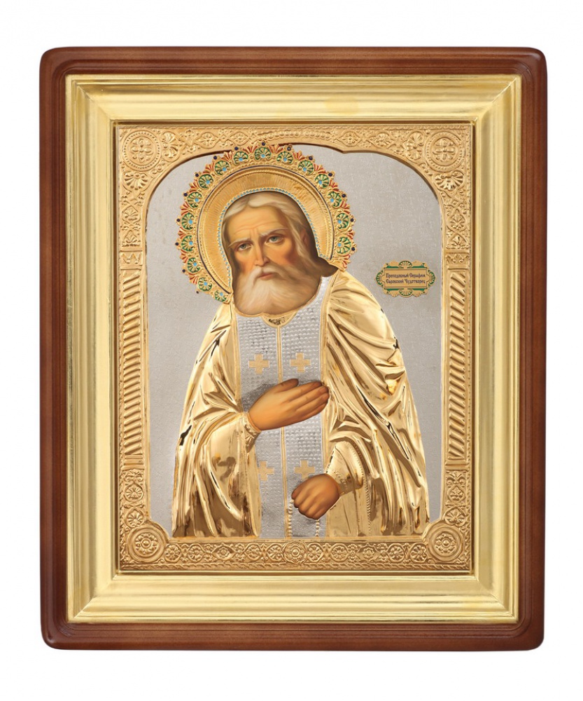 Икона живописная в киоте 60х70 масло, риза №122, эмаль, киот №1 Серафим Саровский