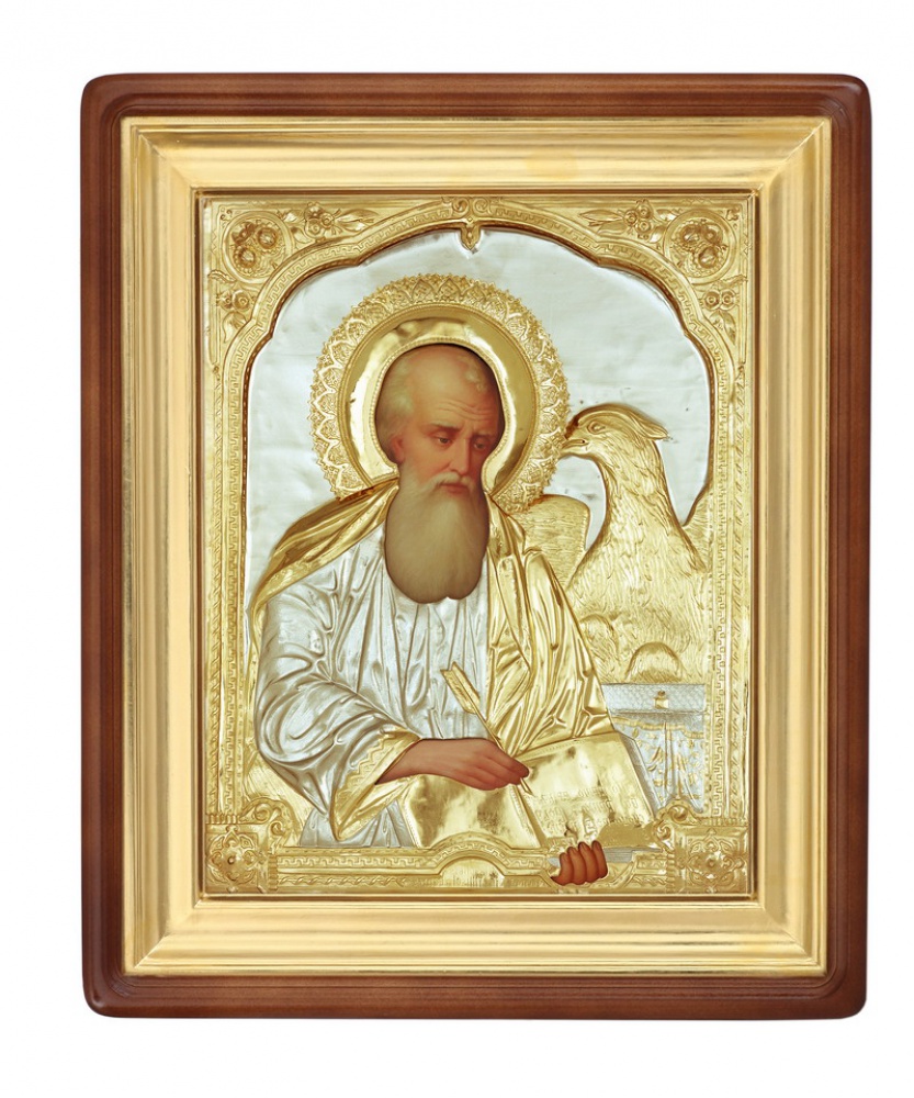 Икона живописная в киоте 60х70 масло, риза №153, киот №1 Иоанн Богослов