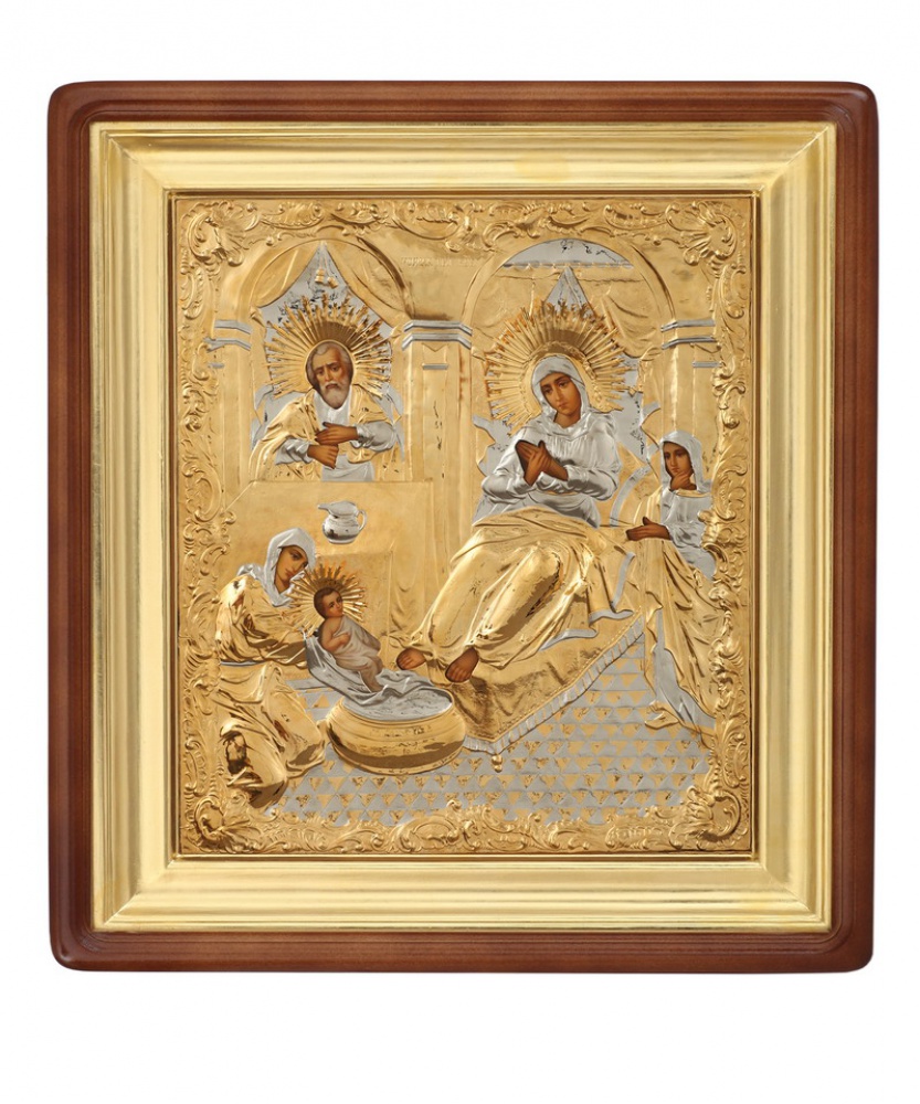 Икона живописная в киоте 60х70 масло, риза №186, киот №1 Рождество Богородицы