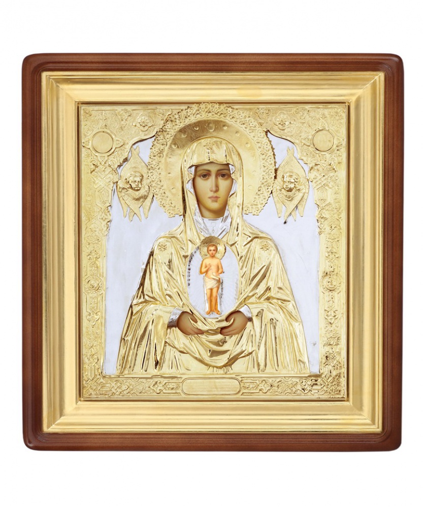 По желанию заказчика киот может быть изготовлен из других пород древесины: дуб, красное дерево и др.. Цвет киота может быть выбран по образцам представленным в отделе сбыта. Подрамник может быть покрашен золотой аэрозольной краской. Ризу можно сделать полностью золоченой или полностью никелированной. В таких случаях цена рассчитывается индивидуально.