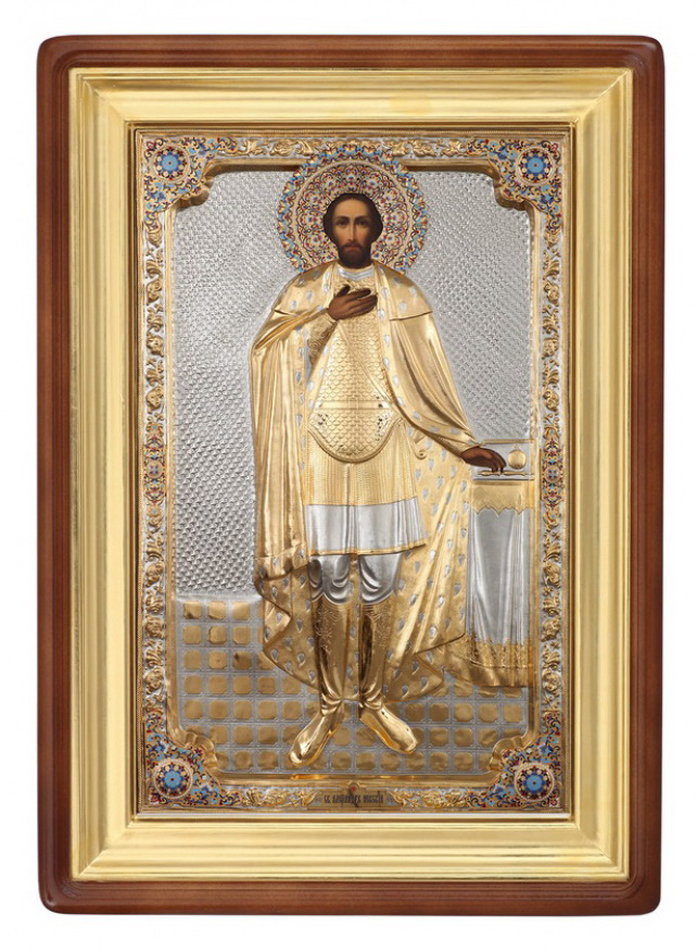 Икона живописная в киоте 85х130 масло, риза №187, эмаль, киот №1 Александр Невский
