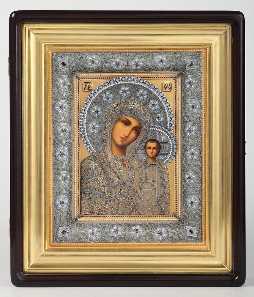 Икона живописная в рубашке 30*40 серебро / киот / Казанская БМ (УИН)