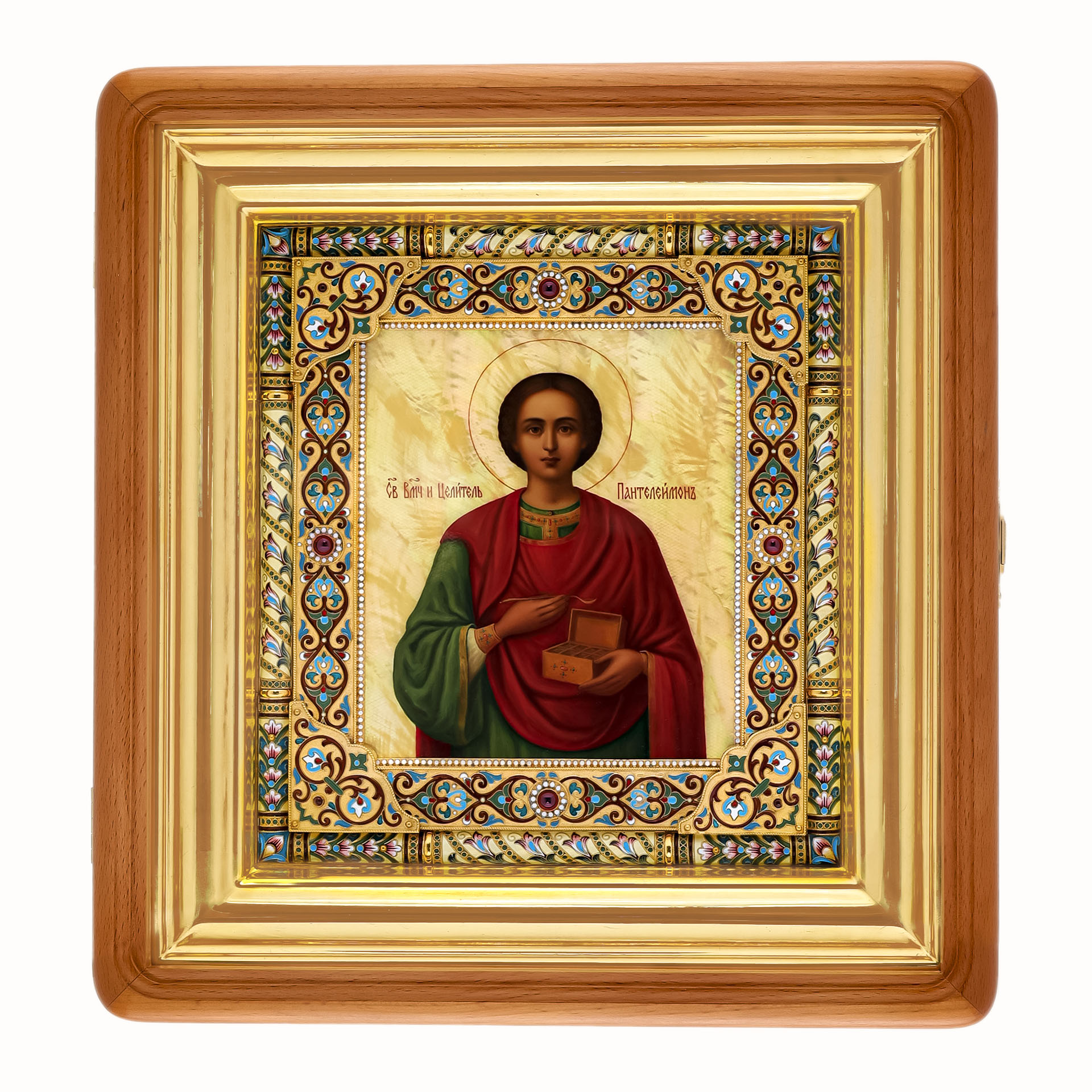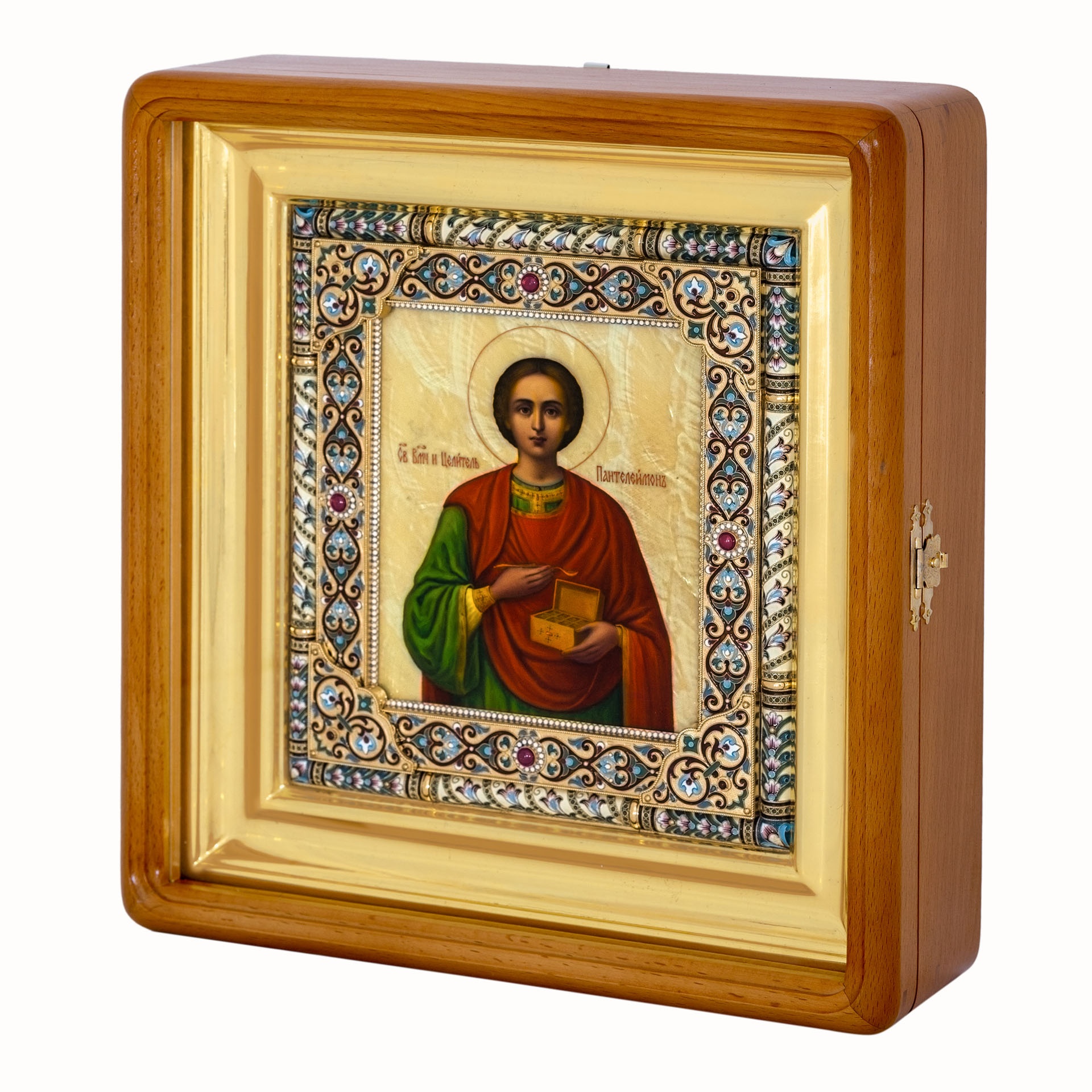 Икона живописная в серебряном окладе 24*30 / киот / Пантелеимон (УИН)